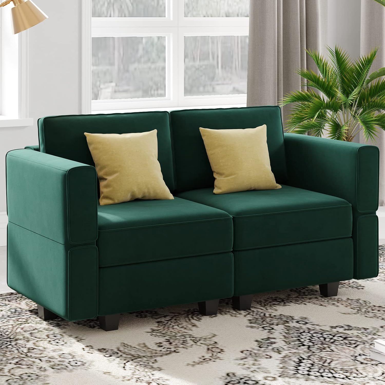 Belffin Modular Loveseat Sofa Couch with Storage Seats Velvet 2 Seater Love Seats for Small Spaces Green