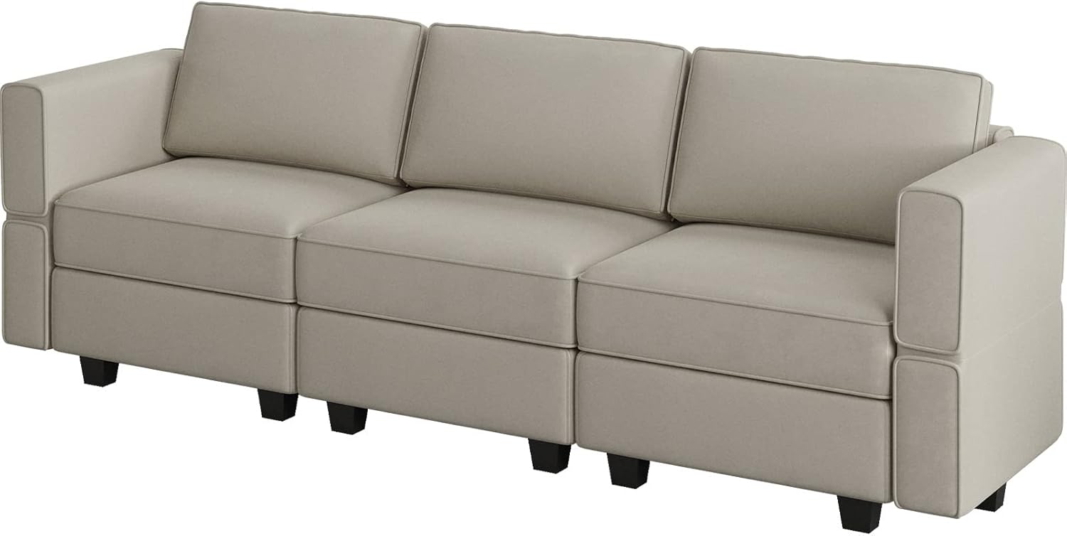 - Multi-functional Modular Sofa: This 3 seater sofa couch has multi-function versatile use, which can be easily and quickly converted into countless forms to meet your various daily needs. Each seat of 3 seater sofa has a hidden storage, and you can put away children’s toys or pillows. Storage dimensions: 22.40''(L)*22.40''(W)"*5.70"(H).