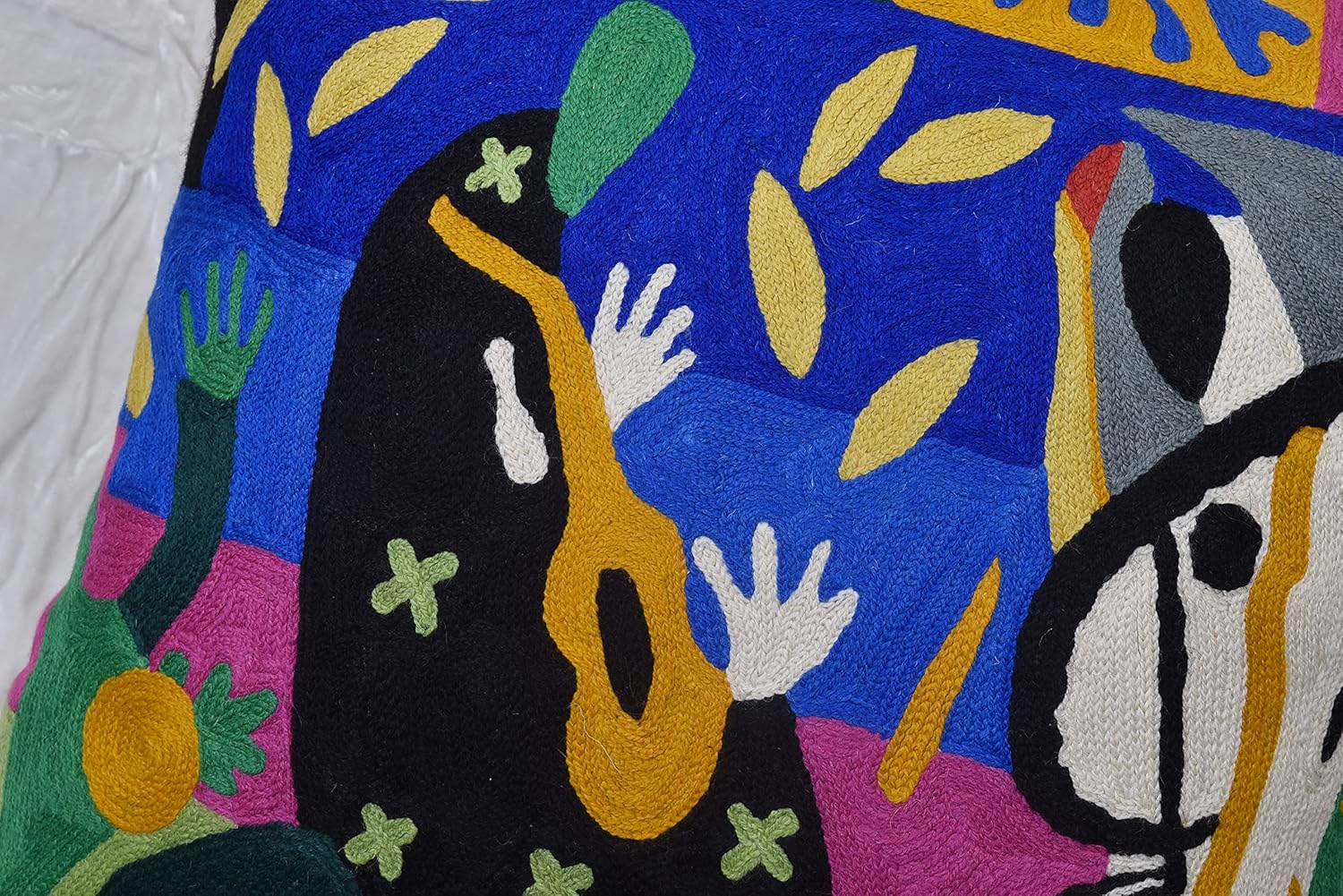 - ❤ Modern Throw Pillow Cover - Hand Embroidered: Inspired by the bold and expressive style of Henri Matisse, our vibrant decorative pillow covers are meticulously hand-embroidered using soft wool. Each piece is crafted with painstaking attention to detail by skilled artisans, resulting in a striking abstract design that adds a touch of artistic elegance to your home decor. A closer look reveals the exquisite craftsmanship of fine chain-stitch hand embroidery, making this contemporary accent pillow a true work of art.