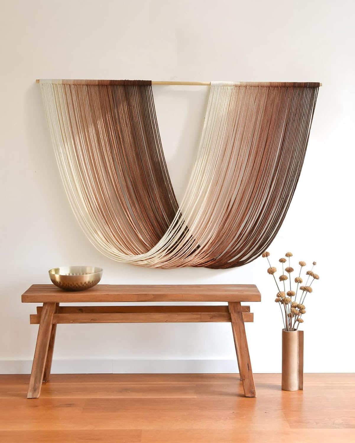 - Function:If you have a blank wall that just needs a little something, add this modern macrame piece for a chic, stylish design statement.Dip-dye macrame wall hanging With oversized design, it is immediately adds a ton of tactile and visual impact to your walls, and it is perfectly fit in a bed headboard,living room,gallery wall,fire place,couch,boho bedroom decor,entry,hallway,nursery or console ect.These also look wonderful suspended from a ceiling to add extra dimension to your space.