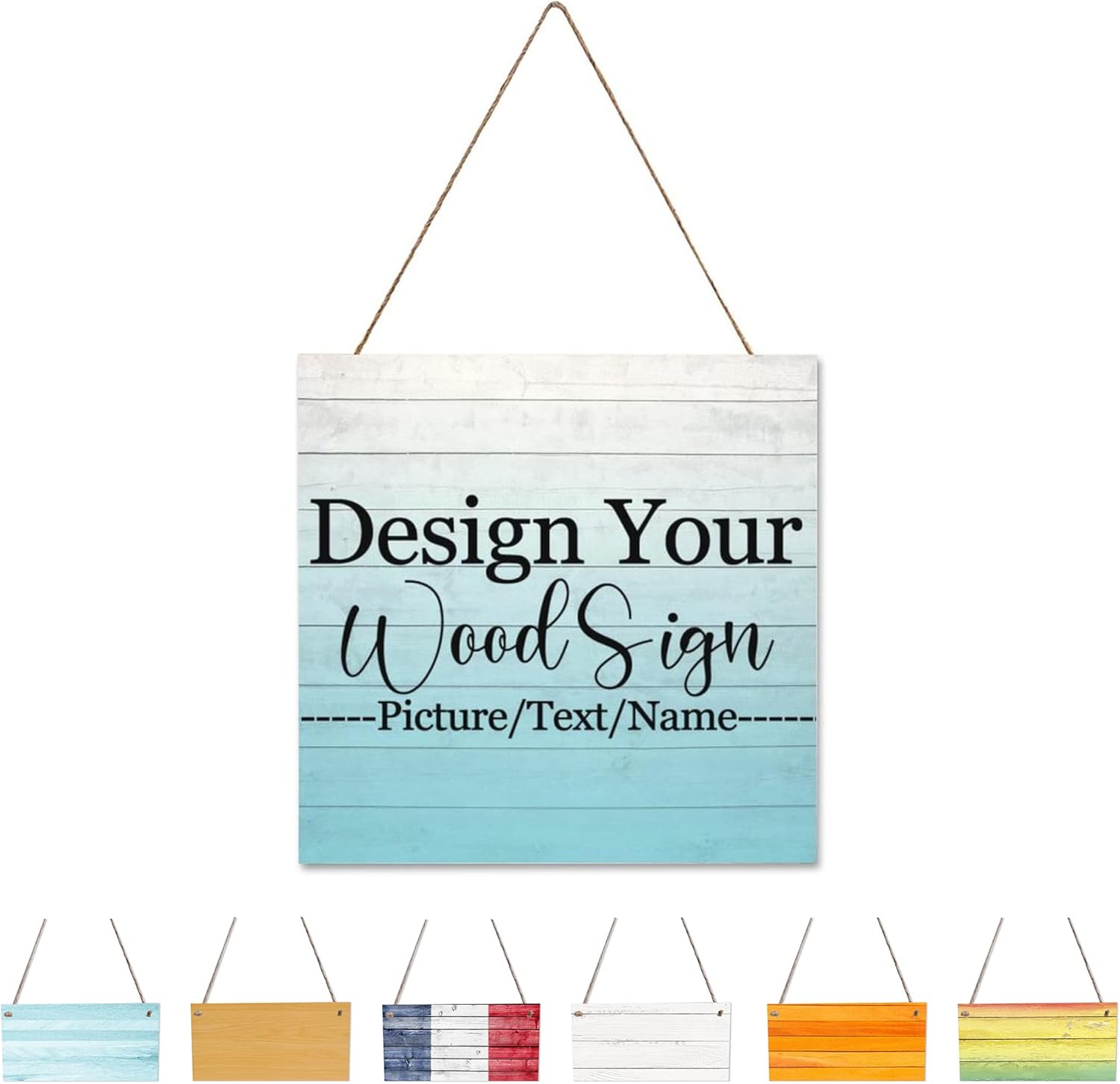 Personalized Hanging Wood Signs, Customized Door Board with Multiple Wood Background and Fonts to Choose, Design Your Rustic Decoration Sign for Home Kitchen Farmhouse 11.8x11.8 inch