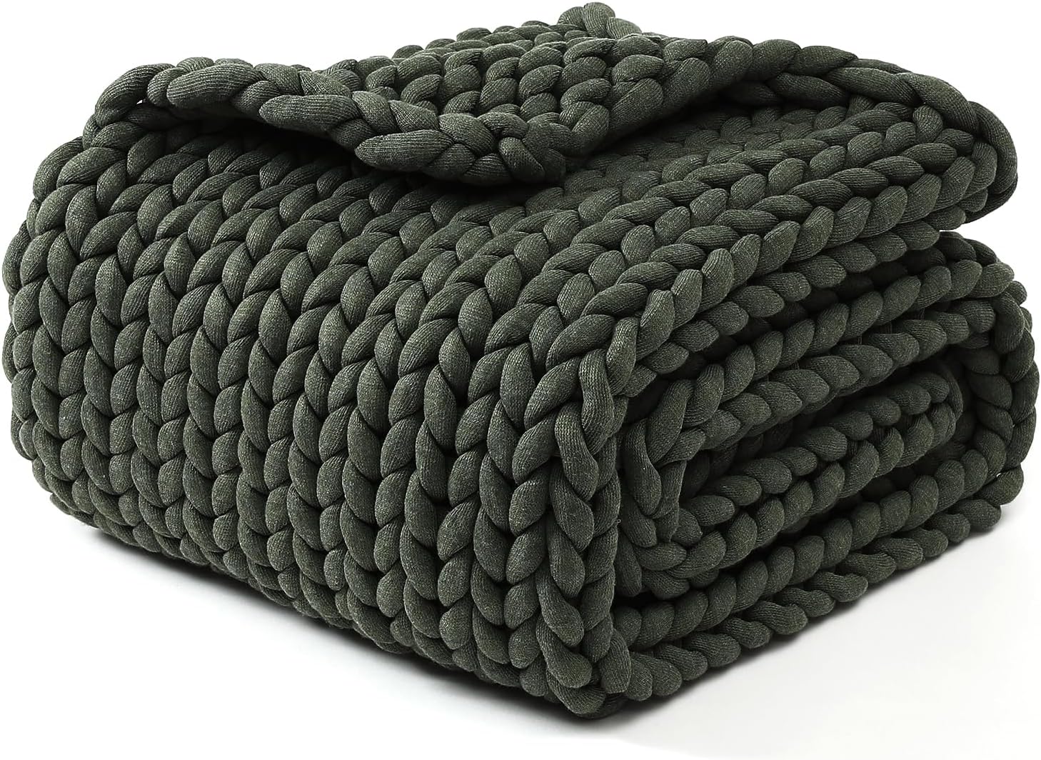 YnM Chunky Throw Blanket, Medium-Weight, Hand Knitted, Skin Friendly, Ventilated and Breathable, Machine Washable, Home Décor Piece for Couch, Sofa and Bed (Olive, 50x70 Inch)