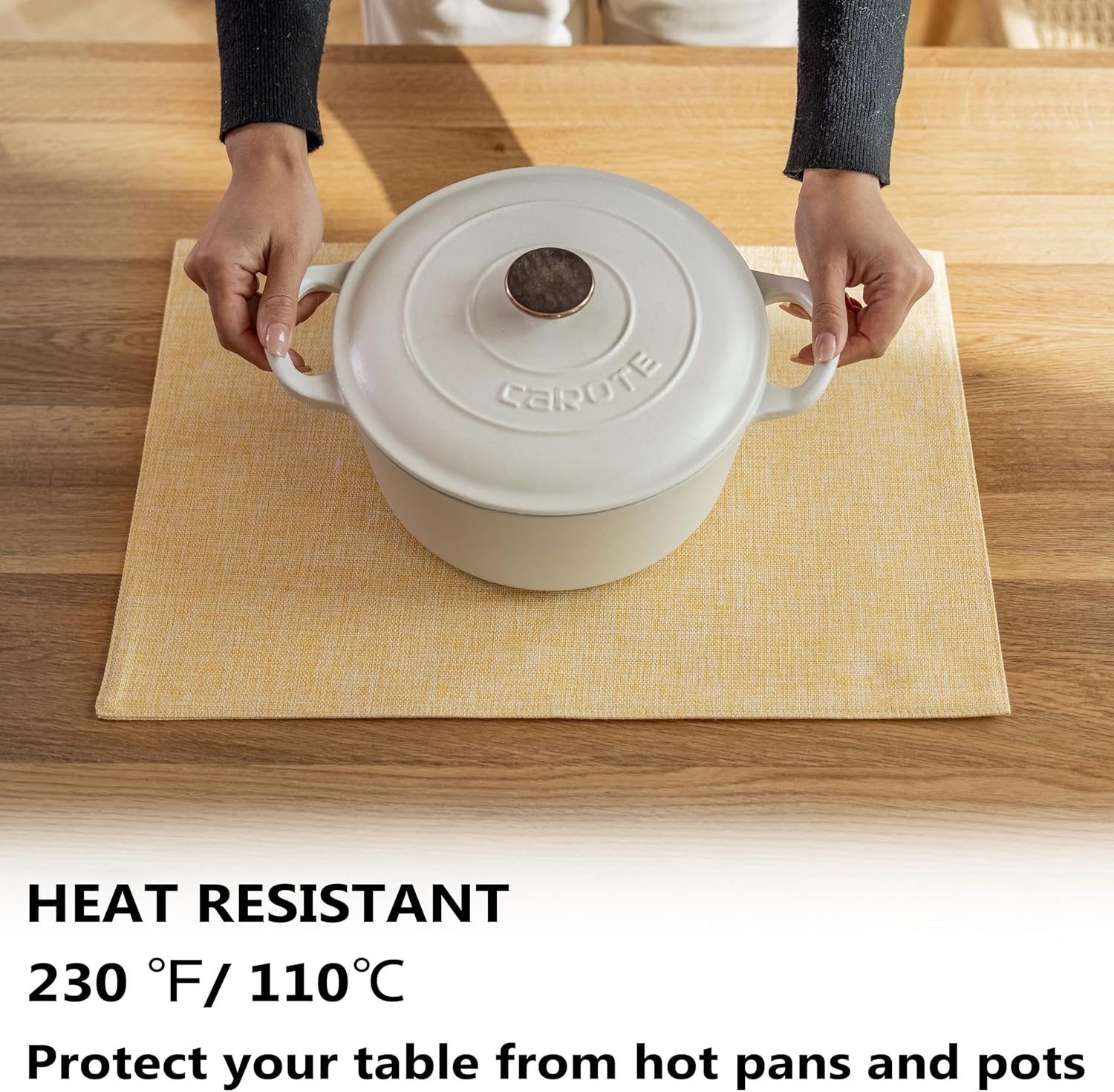 Demetex Yellow Placemats Set of 4 Farmhouse Table Place Mats for Dinner Heat Resistant Cloth Placemat for Kitchen Dining Tables, Yellow