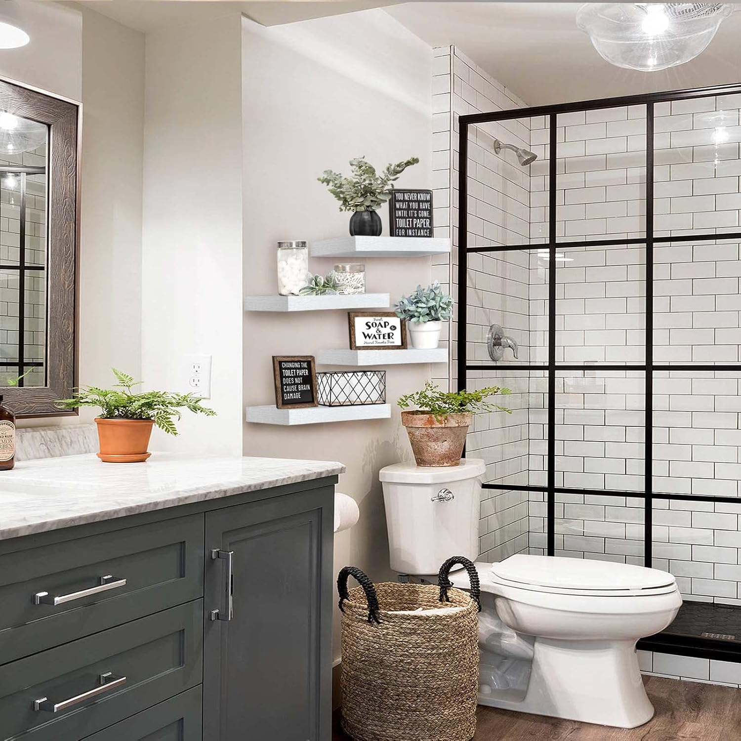 QEEIG Floating Shelves for Wall Bathroom Shelf Bedroom Kitchen Living Room Farmhouse Small Book Shelf 16 inch Set of 4, White (015-W4)