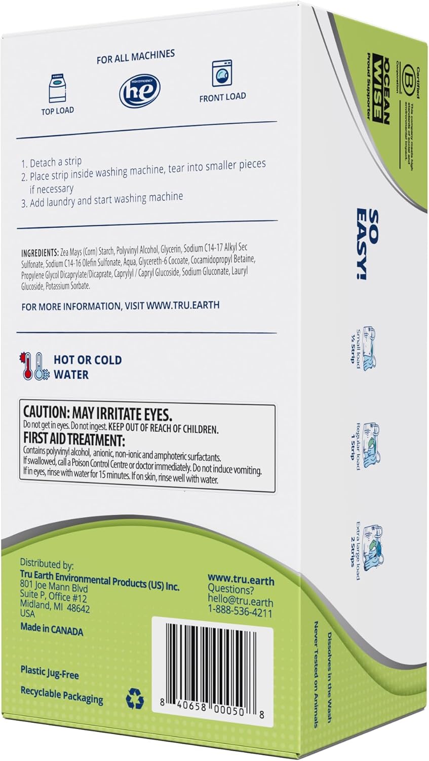 - NO MEASURING, NO MESS: Letβs face it. Traditional liquid laundry detergent can sometimes be messy, and takes up space. Measuring out detergent whether it is liquid or powder can result in spillage. With Tru Earth sheet laundry detergent, 1 strip equals 1 load - no measuring and nothing to spill.