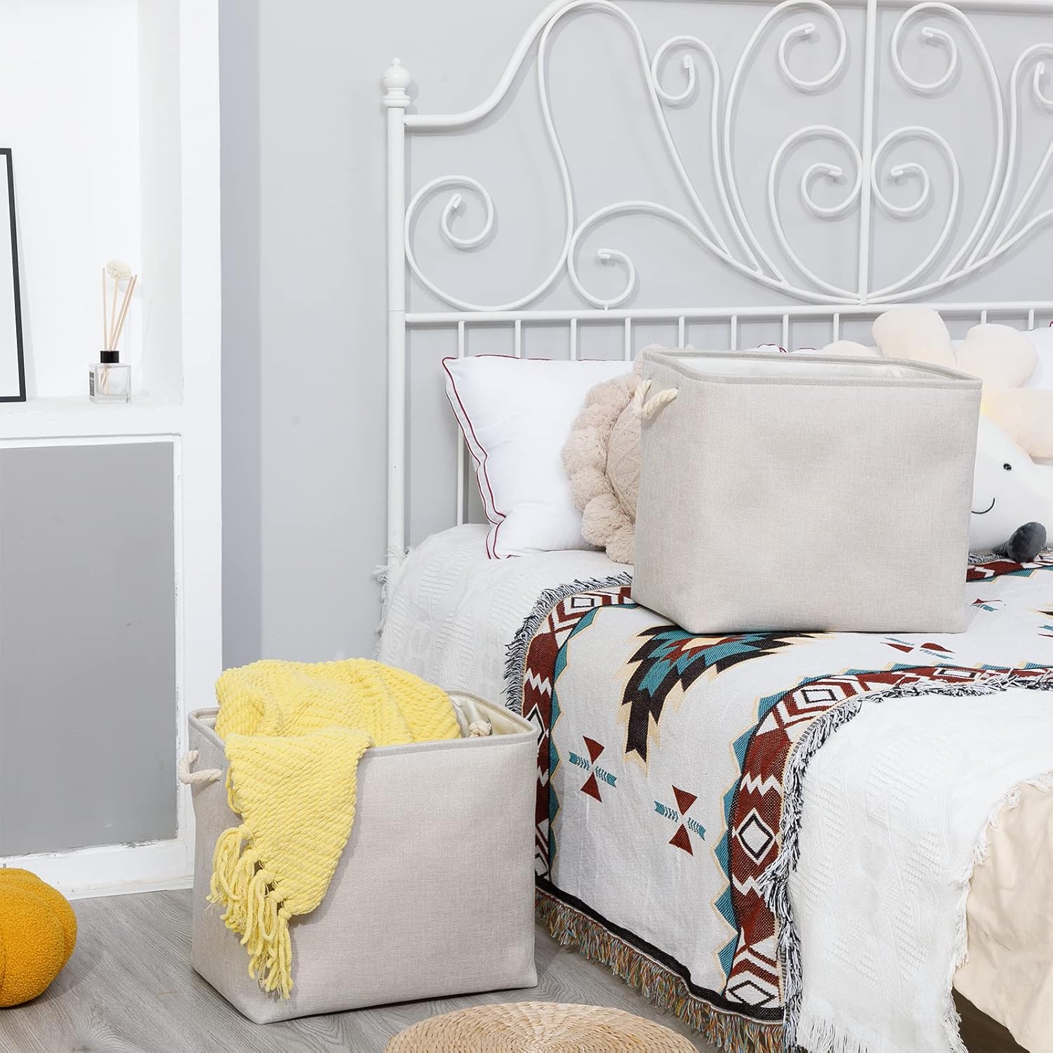 - [Cotton Rope Handles&Premium Fabric] Lightweight storage baskets with cotton rope handles, easy to move and more comfortable grip. Sturdy soft handles on both sides are convenient to retrieve from shelves. These storage baskets are made of durable fabric which is strong and lightweight