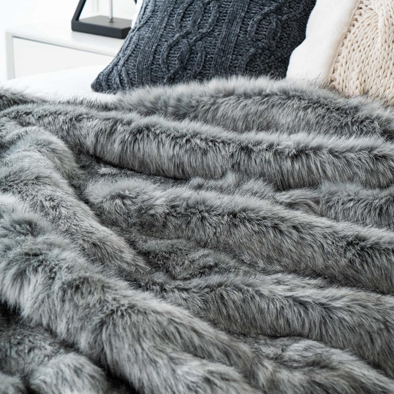 - CLASSY & ELEGANT: Crafted with 2" long hair faux fur on the top side and smooth fleece on the backside, our black tipped fur blanket will take your home decor to a whole new level.