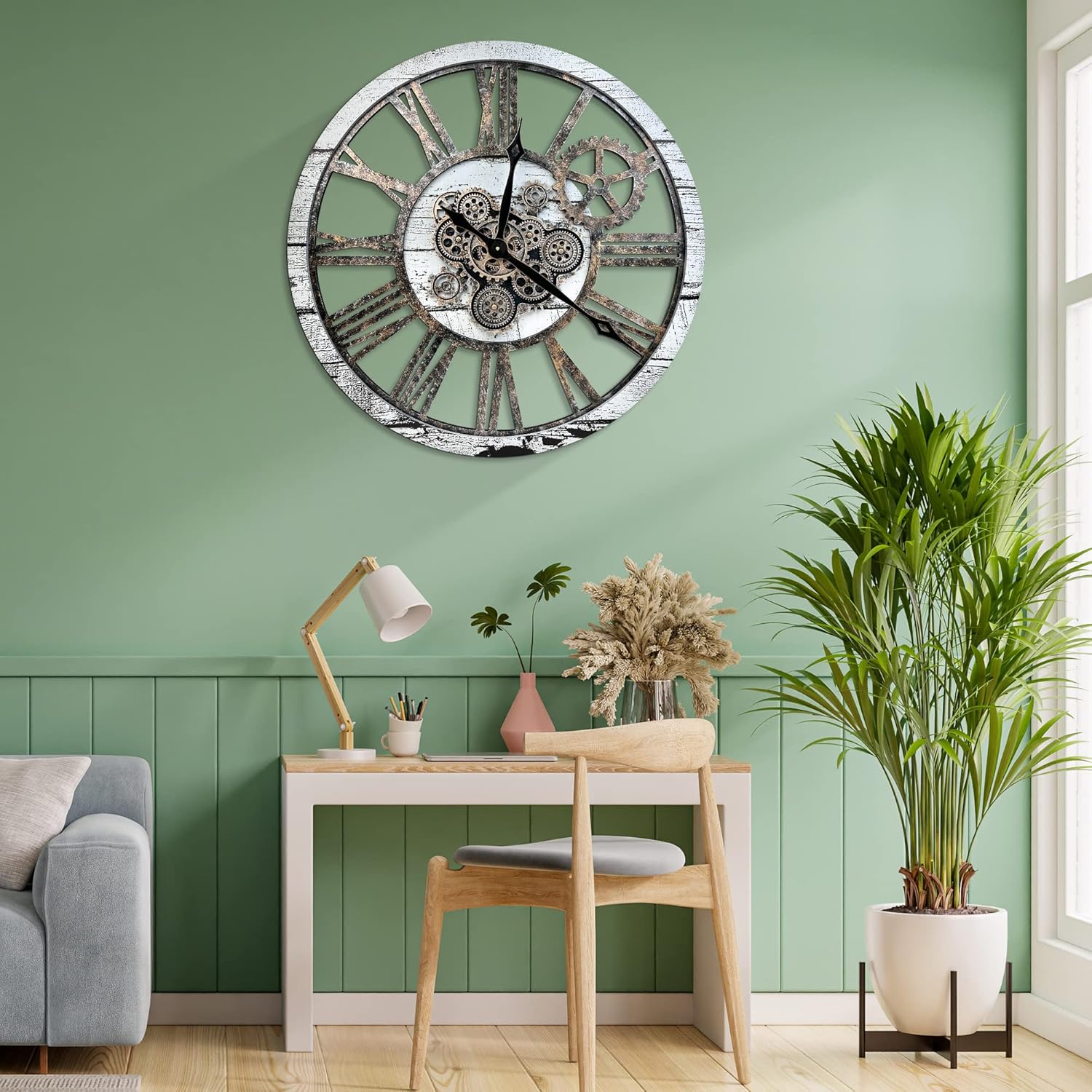 HOIBAI Large Wall Clock Clocks for Living Room Decor Oversized 30 Inch Wall Decor Farmhouse Vintage Rustic Industrial Roman Big Chic Home Decor Wall Clock for House Bedroom, Moving Gears Clock