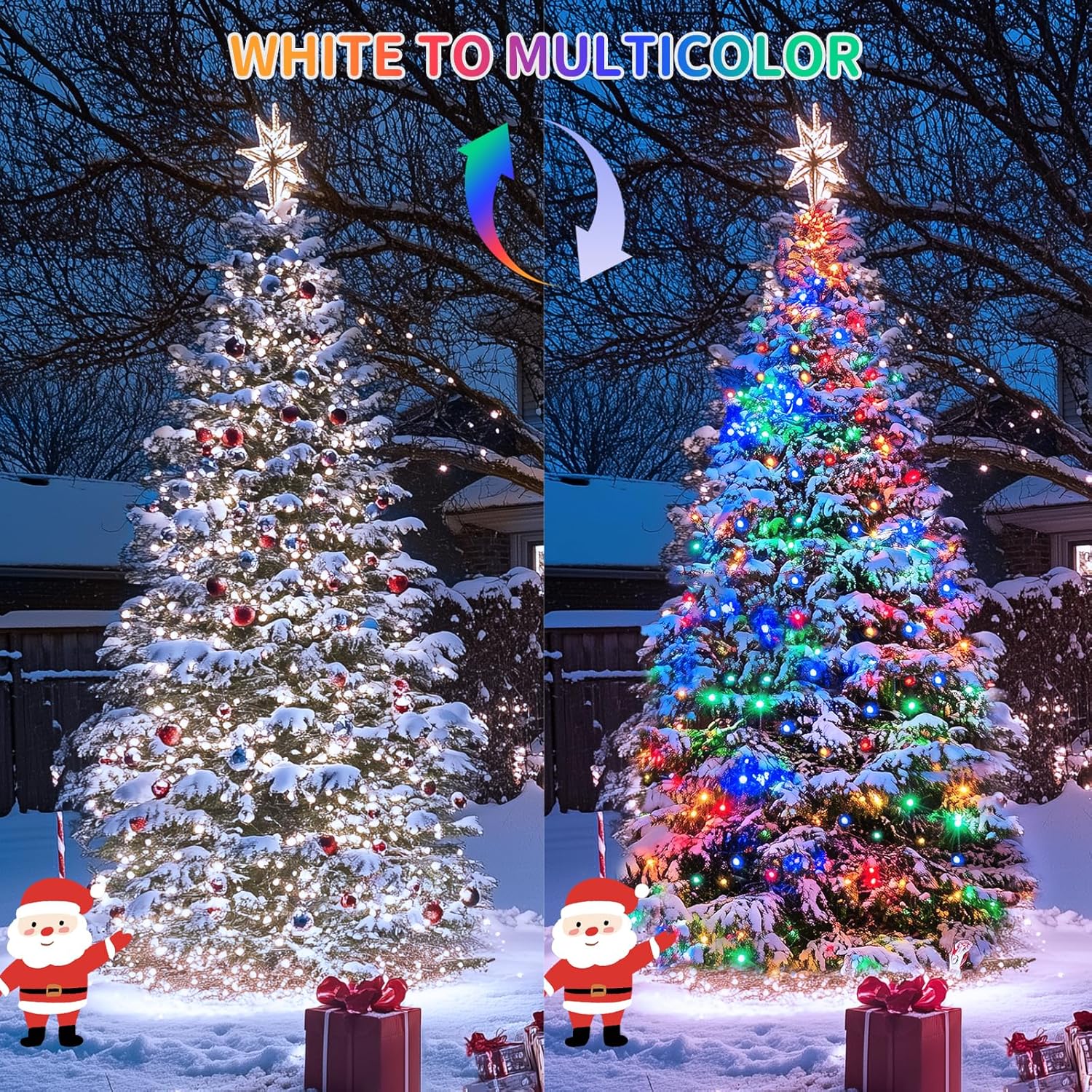- COOL WHITE & MULTI-COLOR CHANGING CHRISTMAS LIGHTS: Are you still buying cool white and multicolor string lights separately? only use one of our color-changing Christmas lights to meet your needs for two kinds of lights. Each of our lights comes with 3 color modes, you can set multicolor only, cool white only, or a combination of cool white and multicolor. Such cool!
