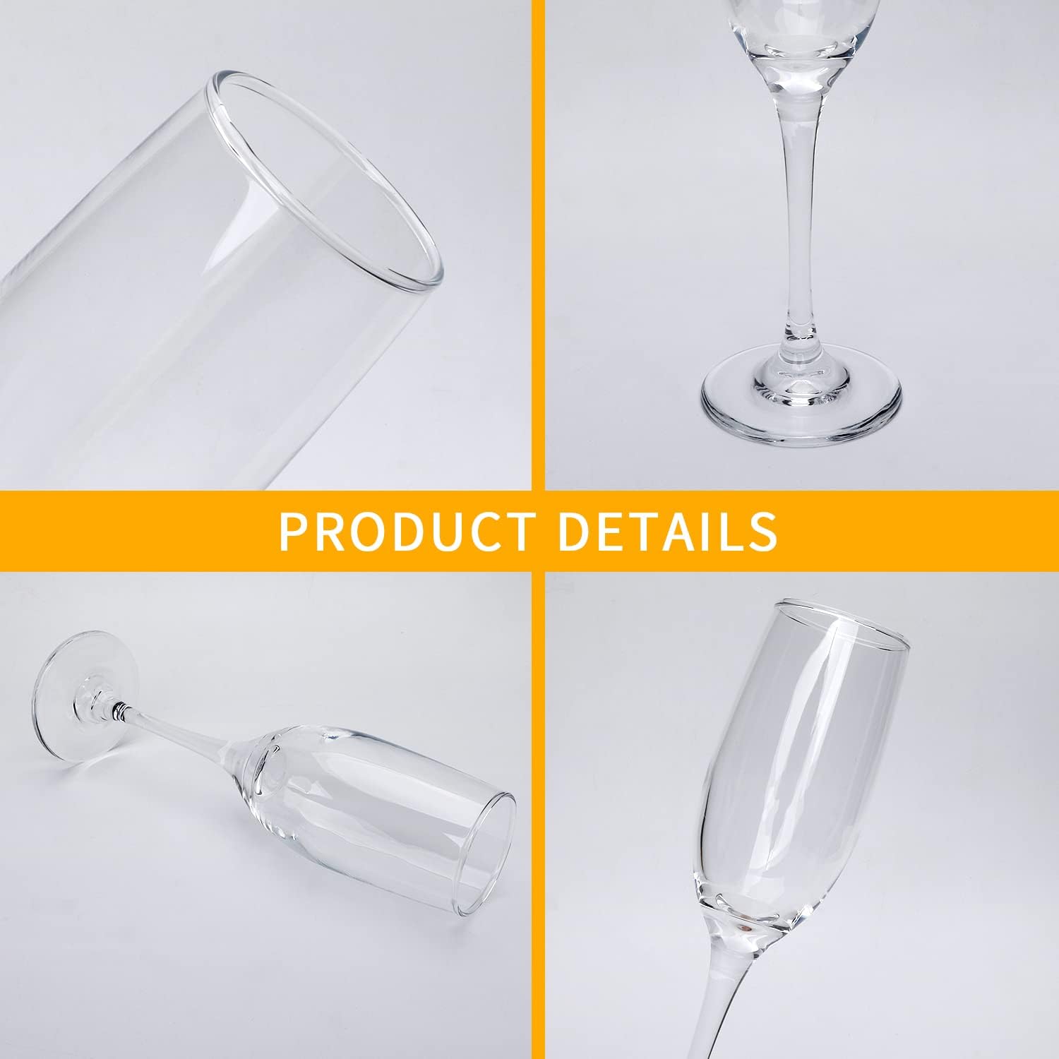 6 oz Champagne Flutes Glass, Wine Flutes Set of 12, for Champagne, Wine, High-End Banquets, Parties, Bars, Weddings, Gifts (12pcs)