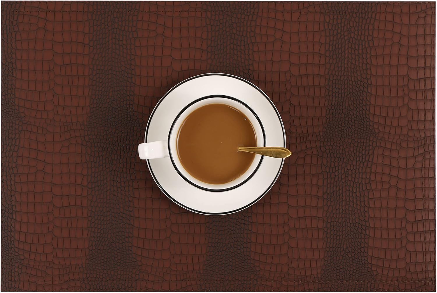 Faux Leather Hardboard Placemats, Set of 6 PU Table Mats, Easy to Clean, Heat & Stain Resistant for Office Conference Table, Dining Home Decor, Brown