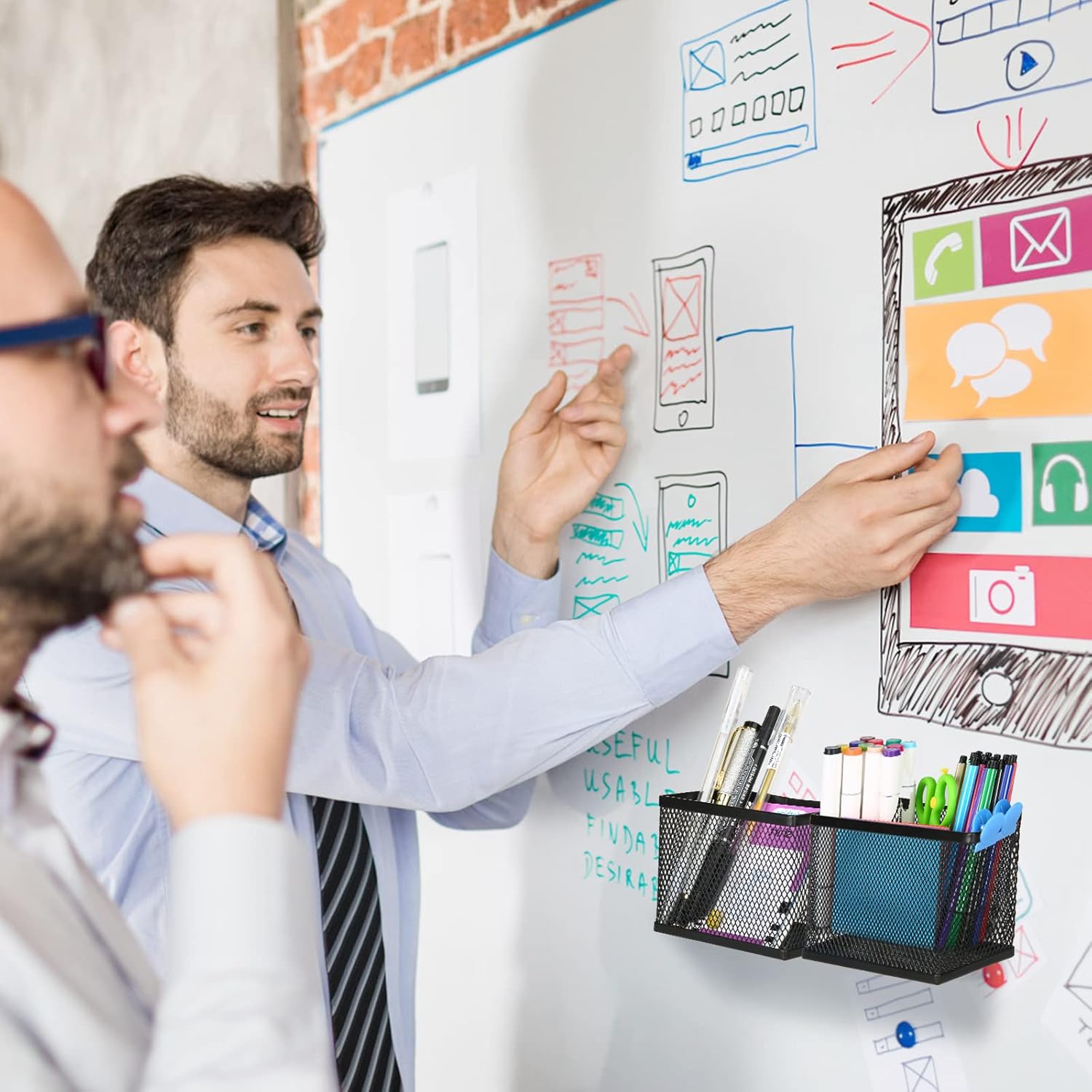 - [Convenient Size to Fit Most Spaces] The pencil holders by Neudeco are the perfect size that can be attached to whiteboards, lockers, refrigerators, and other surfaces without overshadowing sentimental magnets or significant shopping lists. The baskets are excellent caddies for dry erase markers, pens, push pins, and other objects, keeping things orderly in the office, locker room, and classroom.