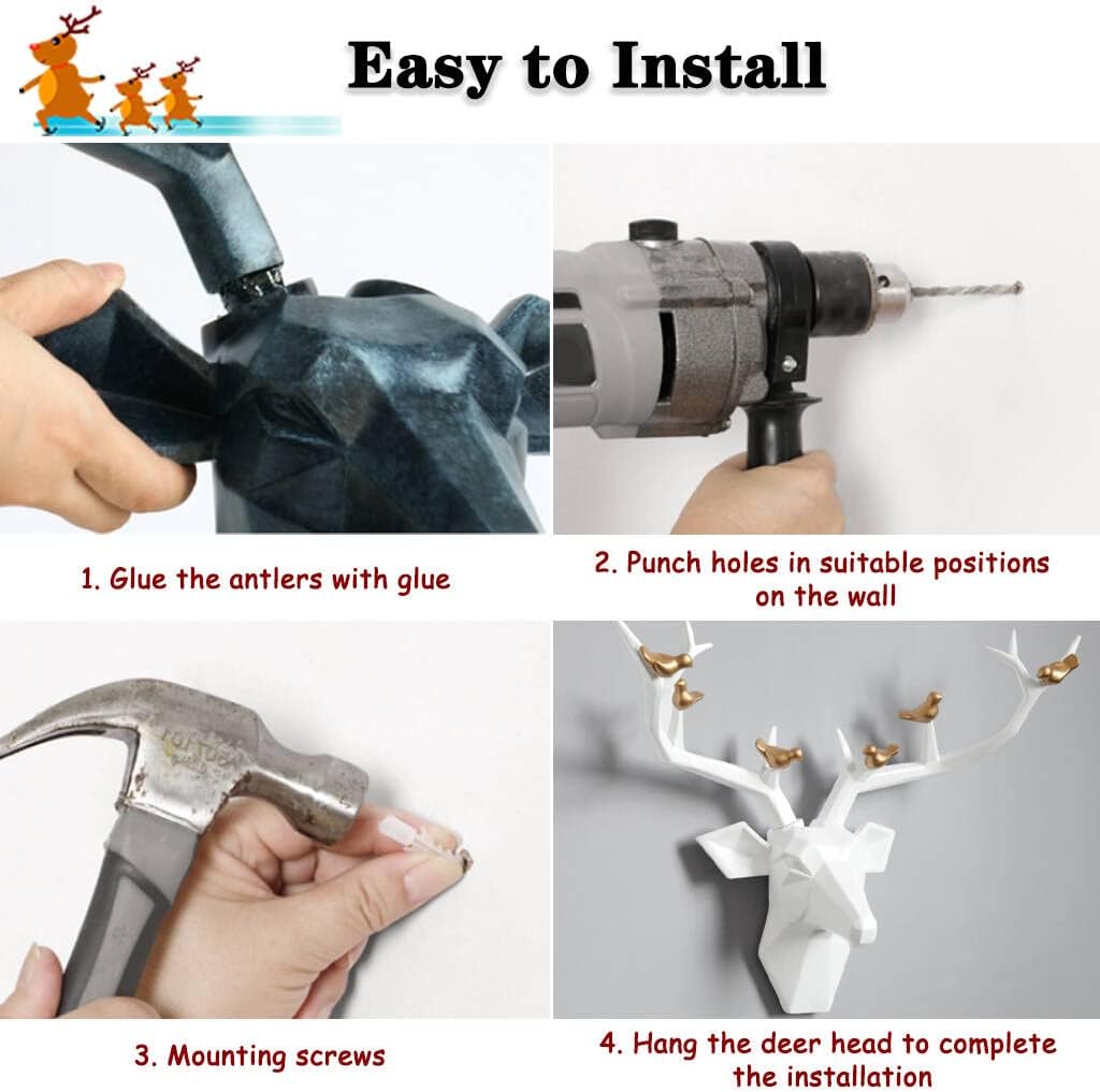 - 🦌【Easy to Install Household Pendant】: Our wall-mounted deer heads are available in two sizes, the antlers can be flexibly dismantled, making cleaning more convenient, you need to fix the antlers on the deer head with glue (glue is not included); Installation method: check the wall first, find a suitable position, and fix it Nails, and finally hang the deer head; the way of drilling and installation will make the wall decoration more stable and not easy to shake