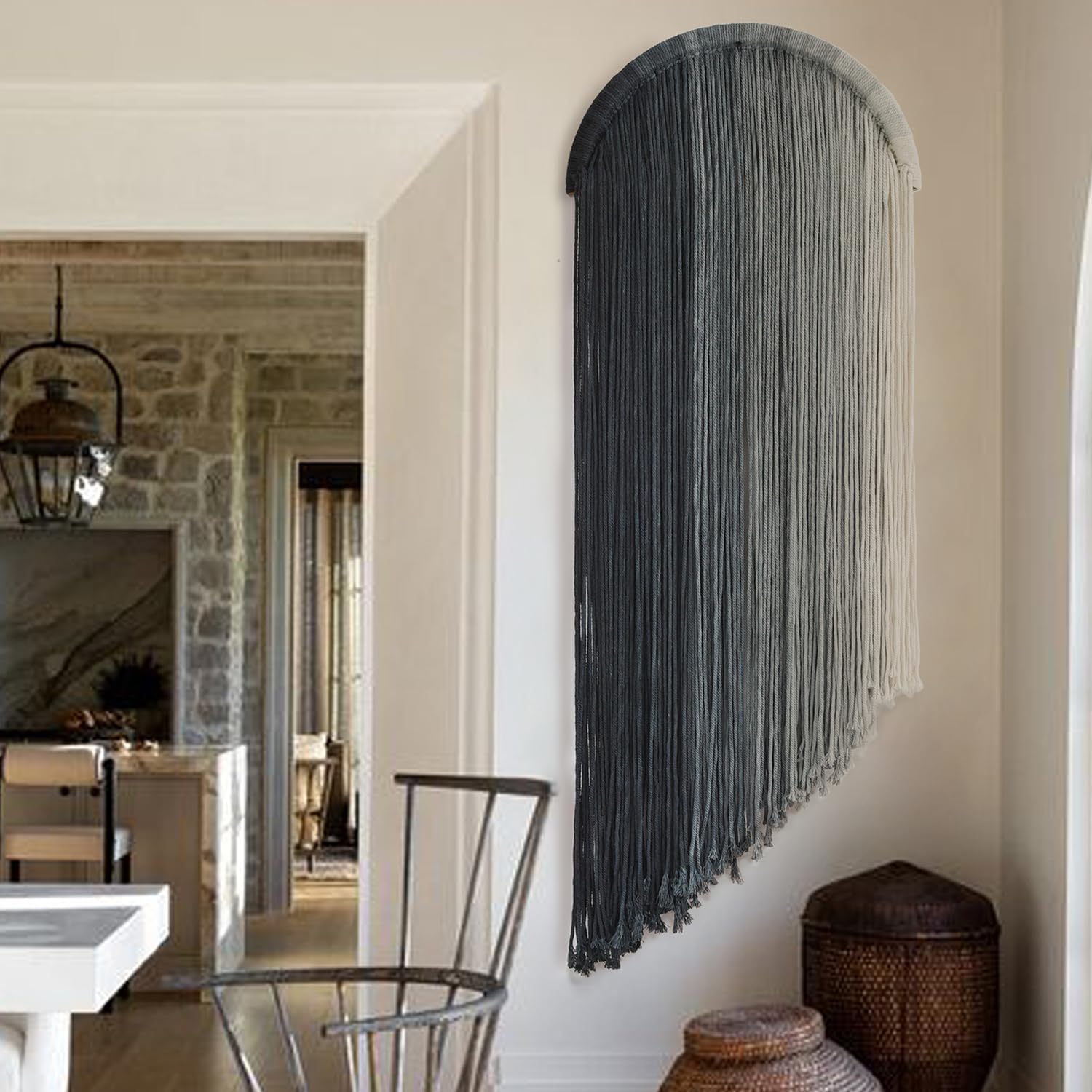 - USE: With this dyed yarn wall hanging, you will instantly add a boho look to your room and it will really warm the space. Will add interest to any part of your home, especially the preferred backdrop for headboards, living rooms, gallery walls, windows, above unused fireplaces, above cribs, nurseries, weddings and parties, cafes or studios.