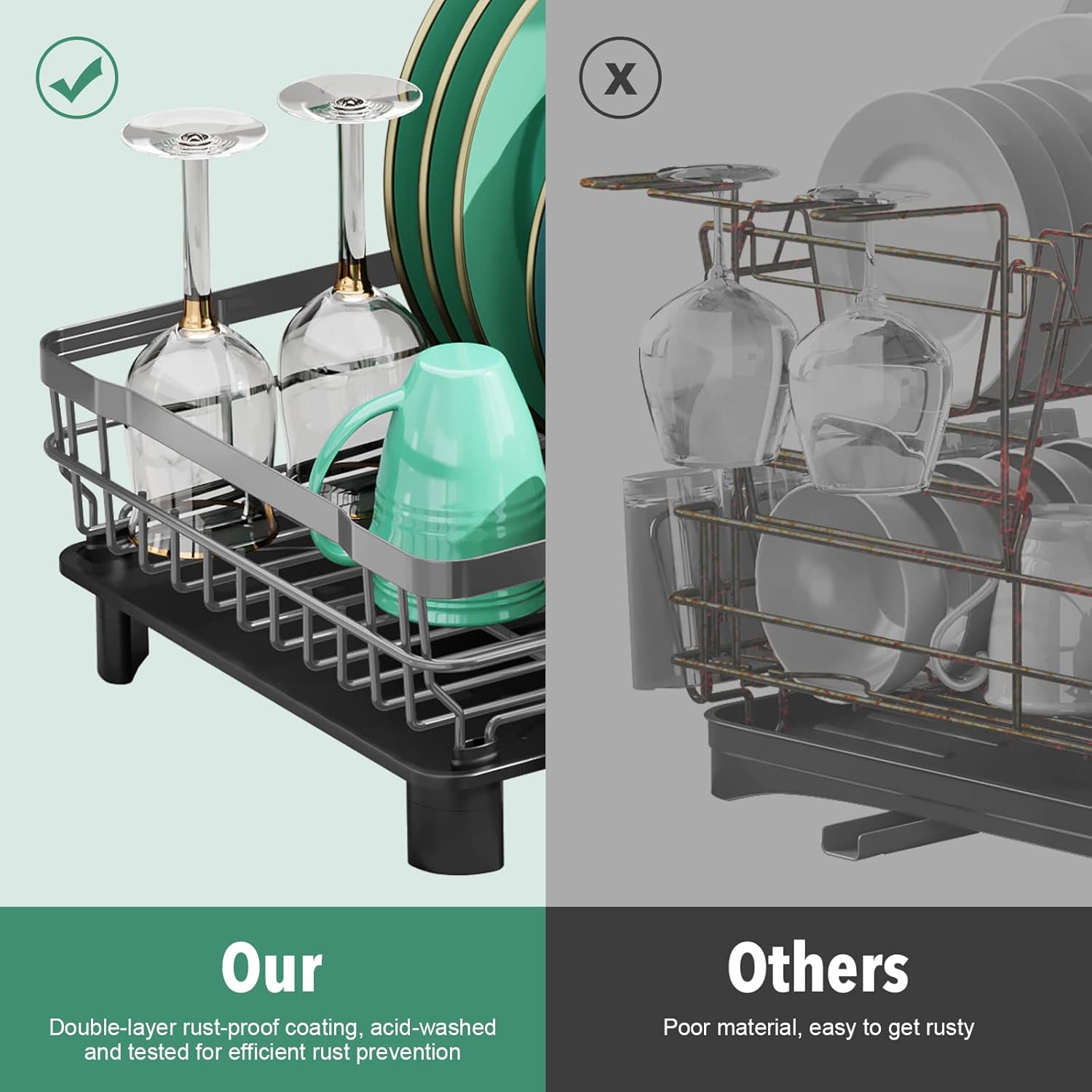 - ππππππ ππππππππππππ:This drying rack for kitchen counter is made of high-quality metal stainless steel covered with a rust-resistant coating to protect the dish racks from rust.The sturdy frame also provides better protection for your dishes