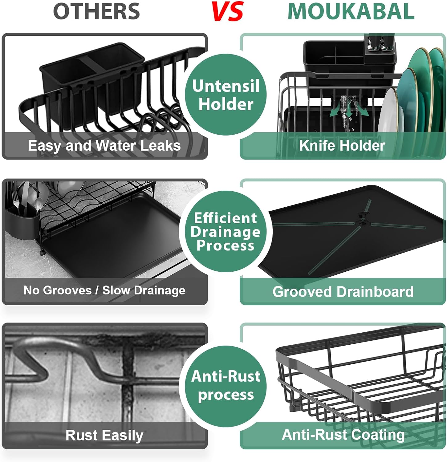 MOUKABAL Dish Drying Rack, Dish Rack, Large Dish Racks for Kitchen Counter, Drying Rack Kitchen with Removable Utensil Holder, Drainboard (Grey/Gray)
