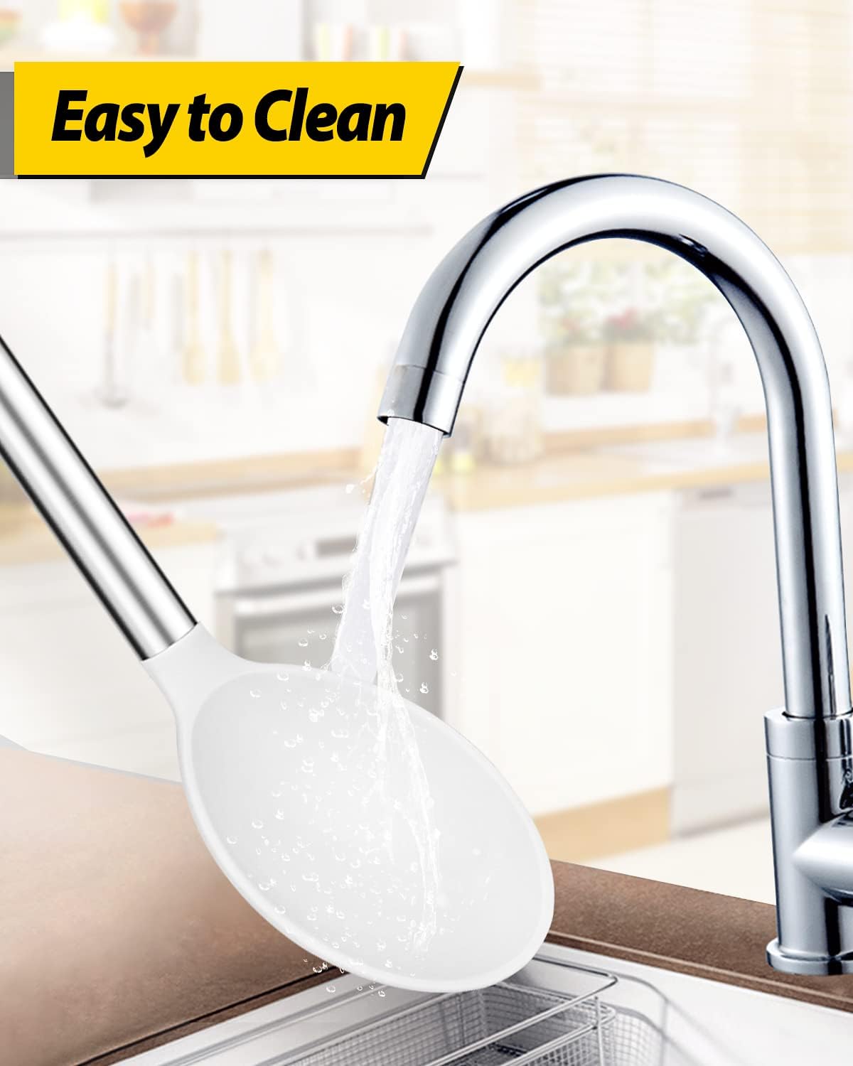 - Thoughtful Design : The good-quality 18/8 stainless steel keeps you away from the trouble of kitchen utensils rusting or breaking; This anti-scald silicone handle is not easy to conduct heat and is more comfortable to hold than traditional utensils