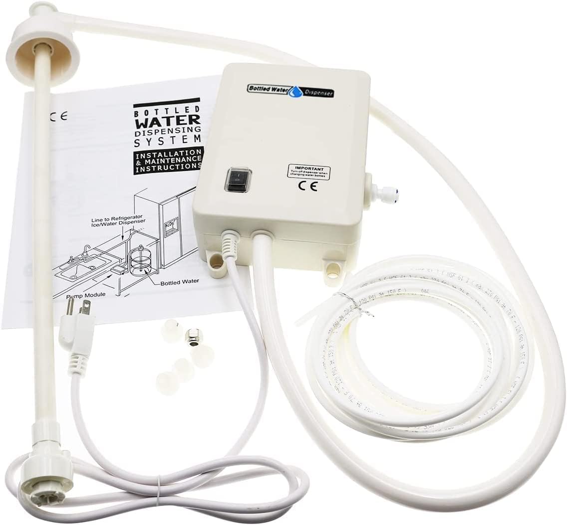 - 【Bottled Water Dispenser Pump】This 110V bottled water pump dispenser is designed for a 5-gallon commercial water bottle. The Dispensing pump system have a maximum pressure of 40 PSI (2. 8bar) and delivers water under pressure to an individual drinking water faucet, providing hot or chilled water anytime.