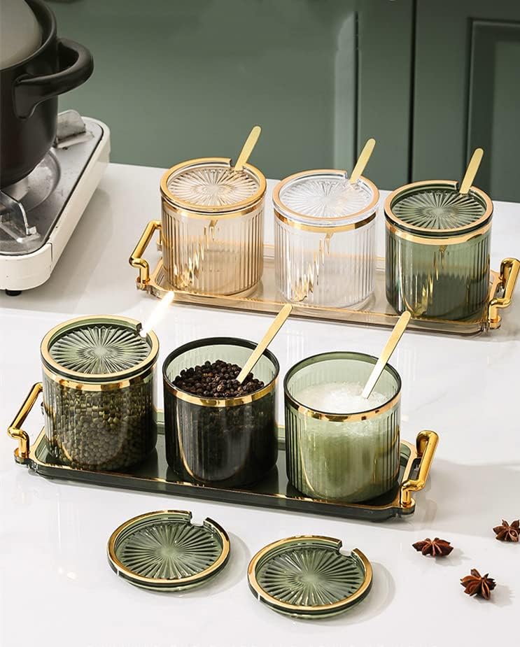 - ▲▲【Material】: Transparent thickened acrylic condiment container, made of PP plastic, equipped with 3 metal spoons and a practical tray with a handle, sturdy and corrosion-resistant, it can be effectively stored while decorating home life, adding color
