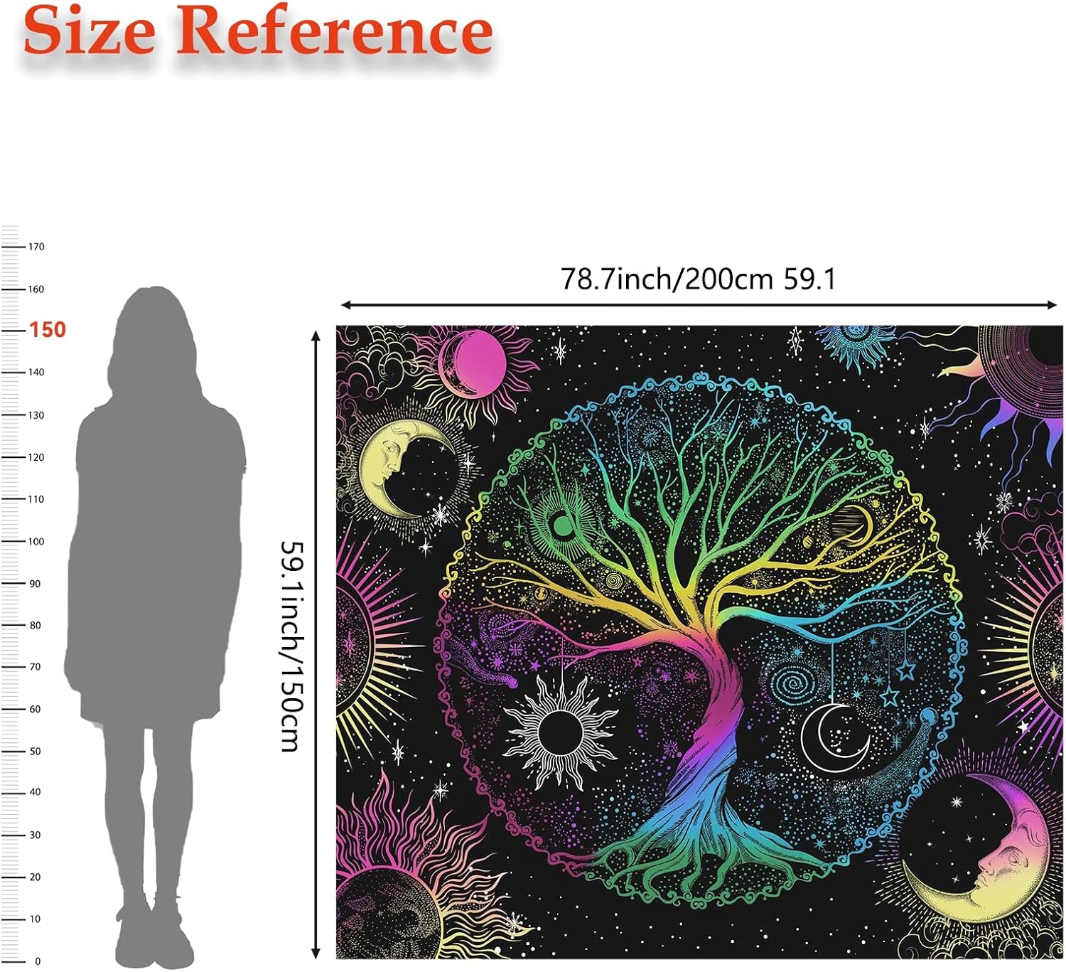 AACKart Blacklight Tapestry for Bedroom - Spiritual Tree of Life Wall Tapestry Glow in the Dark Wall Hanging 78.7 x 59.1 inches