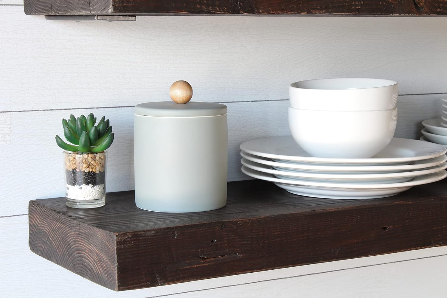 - MULTI-PURPOSE FARMHOUSE FLOATING WOOD SHELVES: Display dishes, books, plants and more on the versatile reclaimed wood planks made into natural wood floating shelves for wall. Our reclaimed barn wood is used to create a wonderful farmhouse shelf look. These shelves make gorgeous living room floating shelves, kitchen wall shelves, or simple dining room shelves. They are also useful as floating shelves for bedrooms, fulfilling your need for wall mounted shelves for the walls of any room!