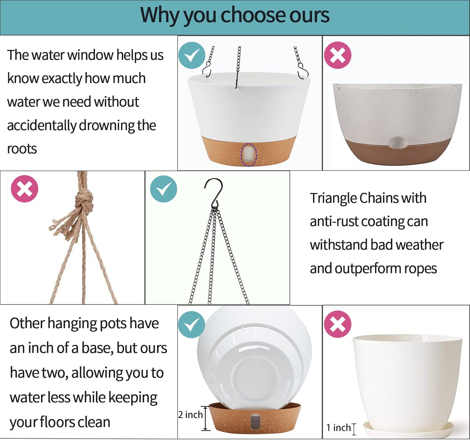 - Drainage Hole on the Bottom: This self watering planters with drainage holes help you avoid overwatering, lets excess water drain, and maintains proper soil air circulation. Grow robust, healthy plants with little maintenance!