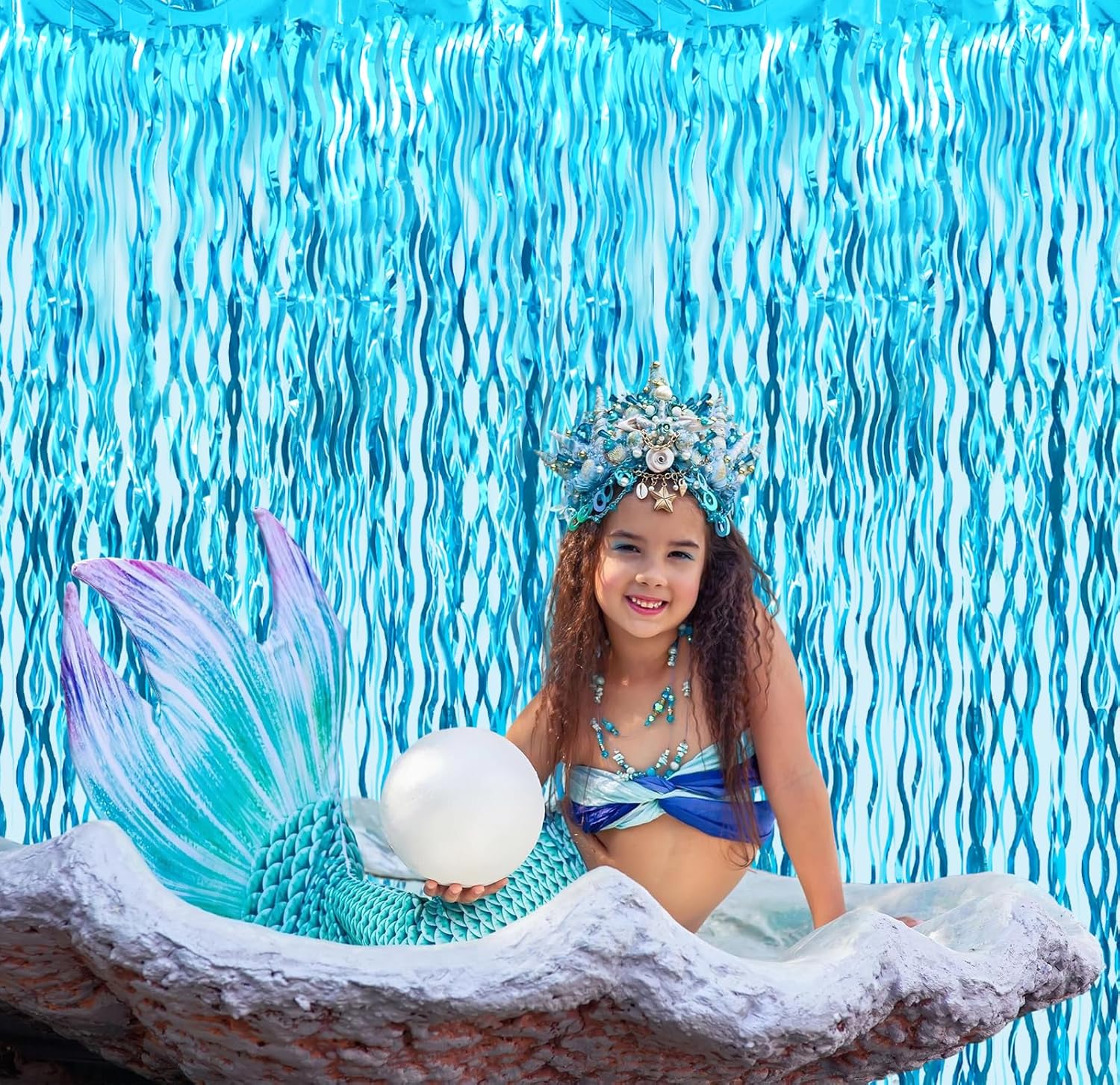 - Package Includes:1 pack wavy light blue foil fringe curtain,3.2 ft x 6.5 ft each,suitable for hanging on a door or coverage a wall fully