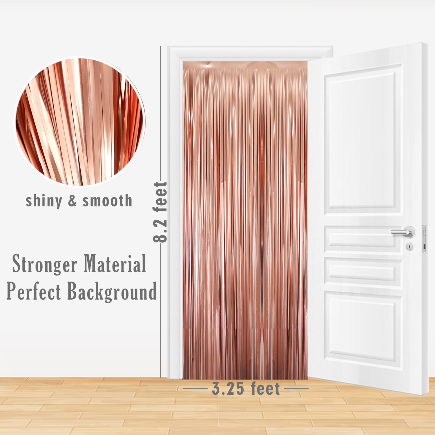 - Package Includes:4 pack matte rose gold foil fringe curtains,3.2 ft x 8.2 ft each,suitable for hanging on a door or coverage a wall fully