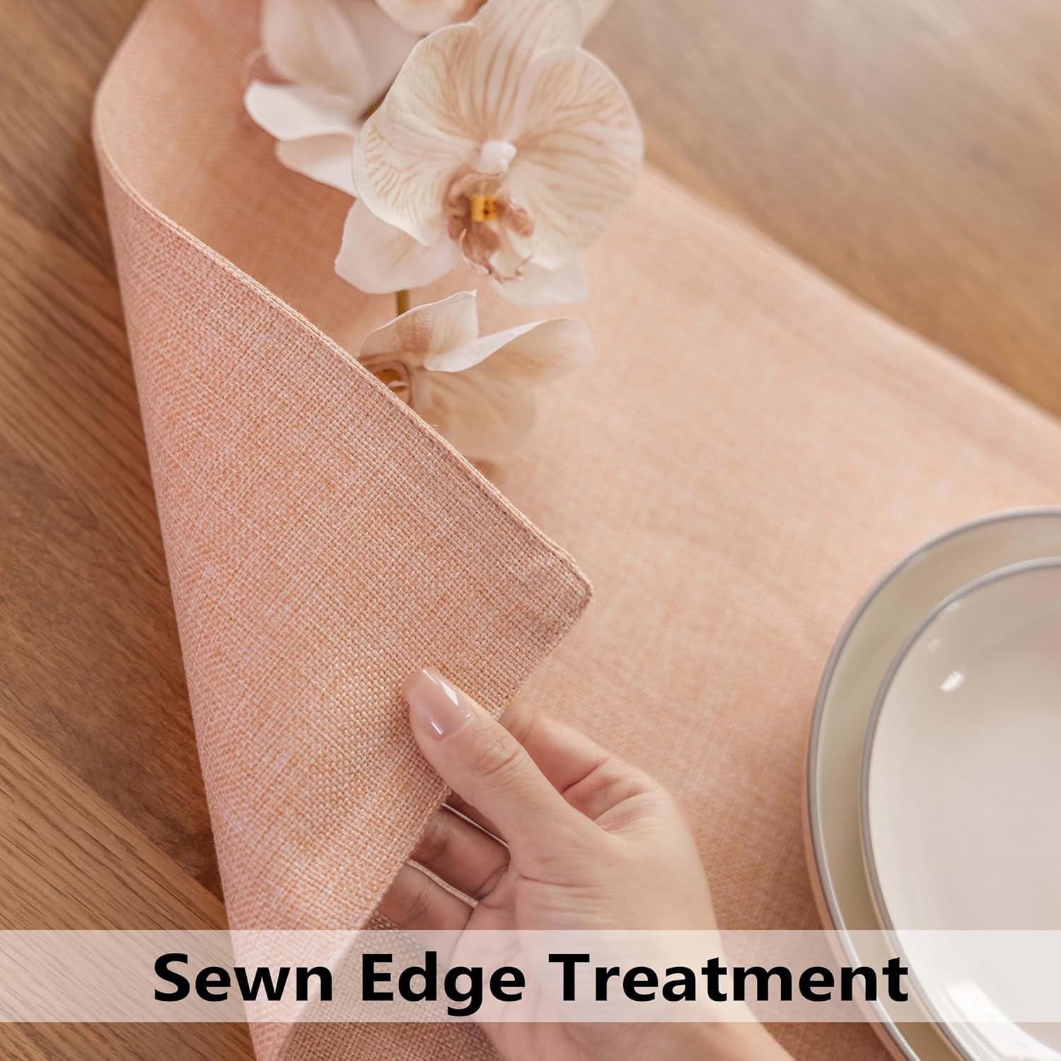 Demetex Pink Placemats Set of 4 Heat Resistant Linen Plate Mats Wipeable Cloth Place Mats for Dining Tables Restaurants, 13 x 19 inches, Pink