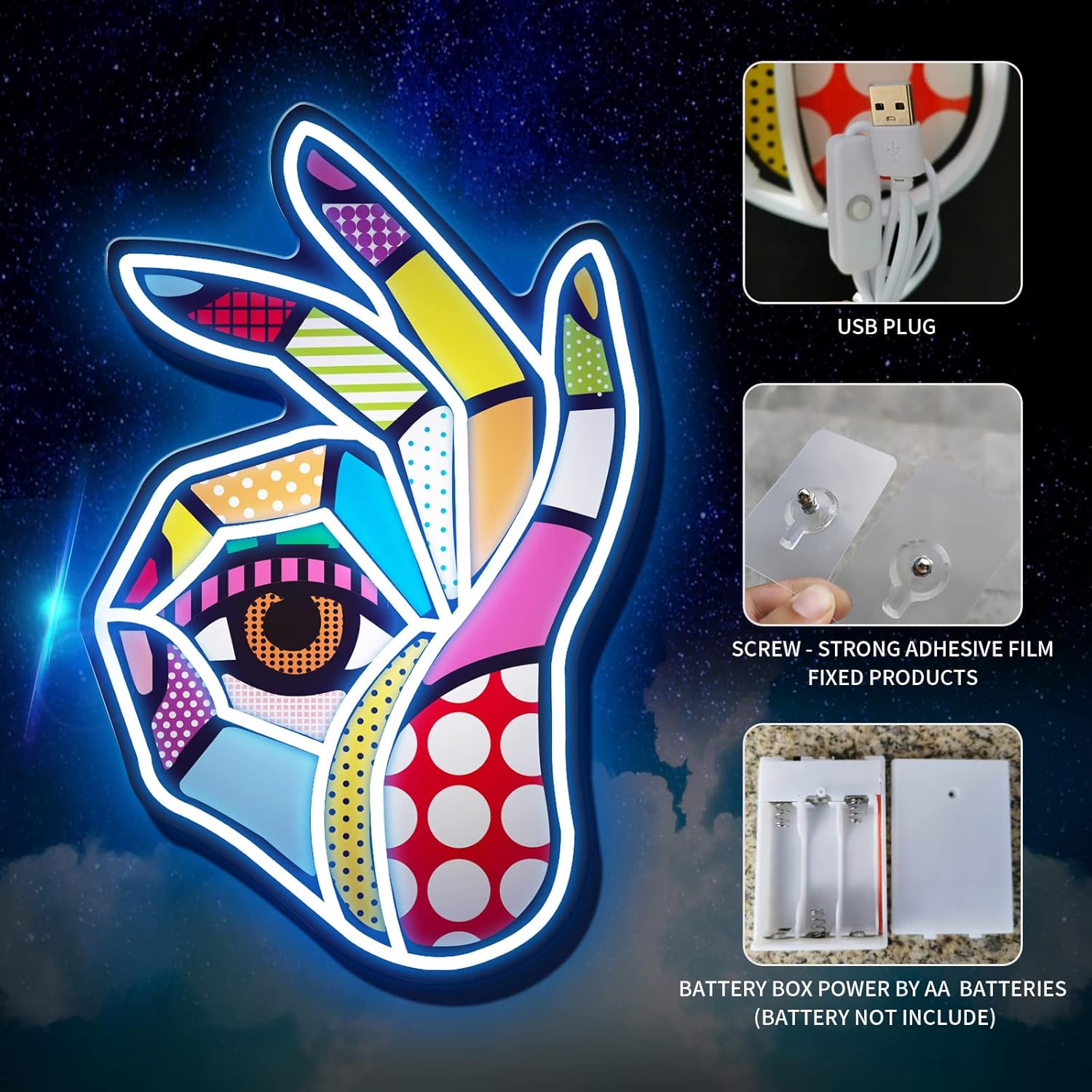 - ăUSB OPERATIONă- USB power supply. Battery Operated Neon Sign OK sign requires only 3 AA batteries (not included), or Insert USB interface, add personality.