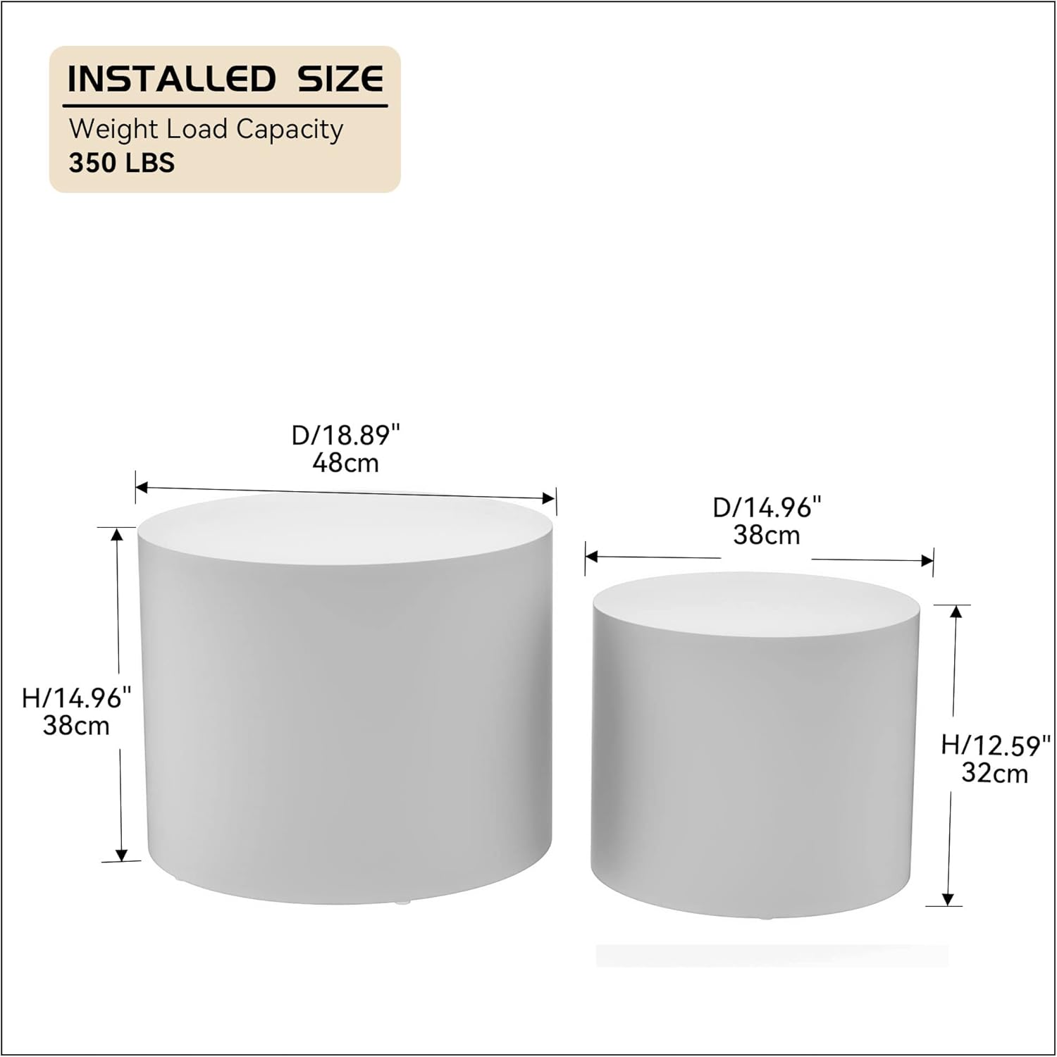 - β The nesting sets consists of one Coffee table (Ξ¦ 18.9 x H 14.9 inch) and one Side table (Γ 14.9 x H 12.5 inch) can be arranged in multiple ways.You could slide the small one under the big one when you wanted more space. You can combine them as you like, make your room tidy and neat.