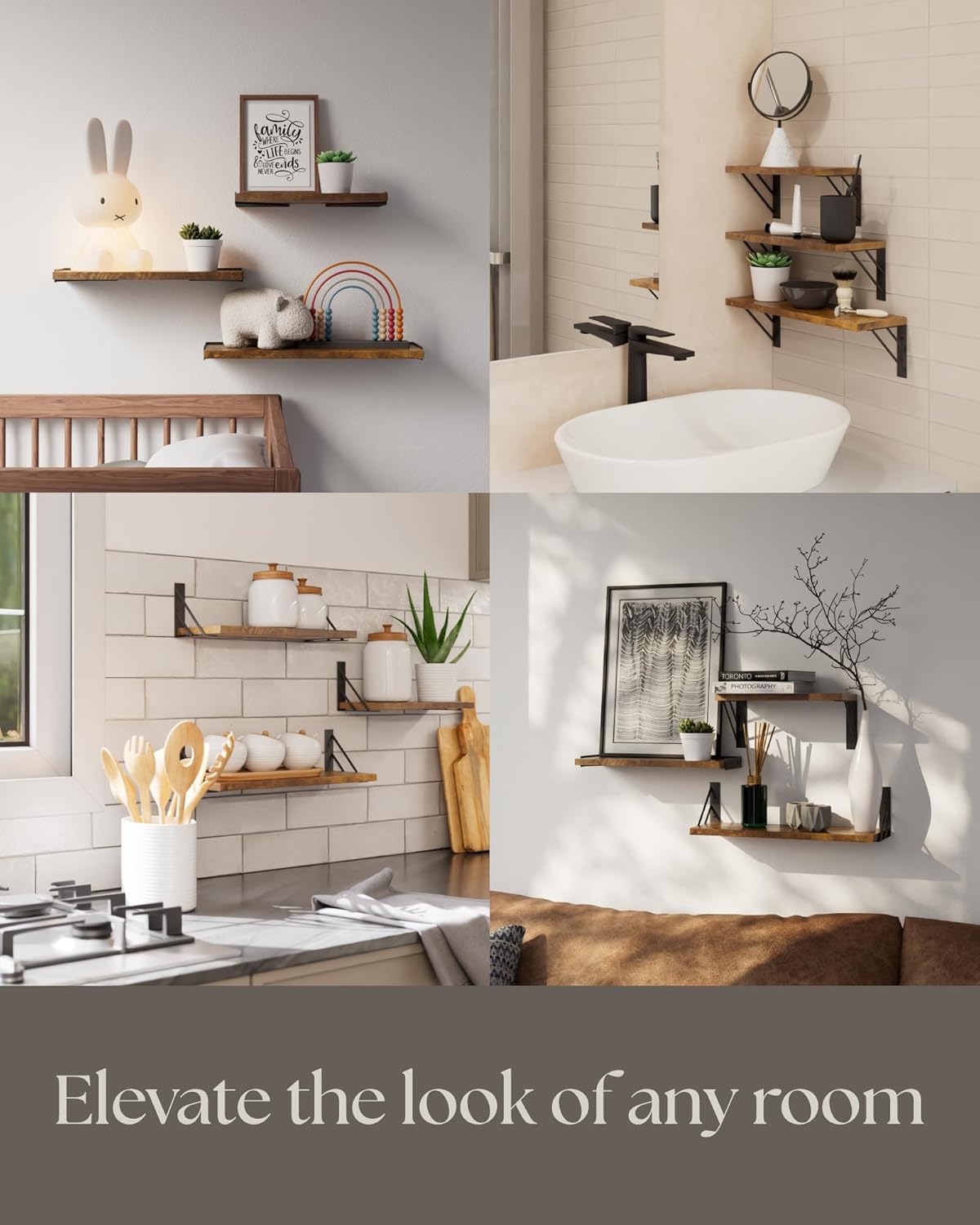 - *Rustic Aesthetic**: These rustic brown floating wall shelves add a touch of rustic elegance to your wall decor, making them perfect for modern or classic interiors