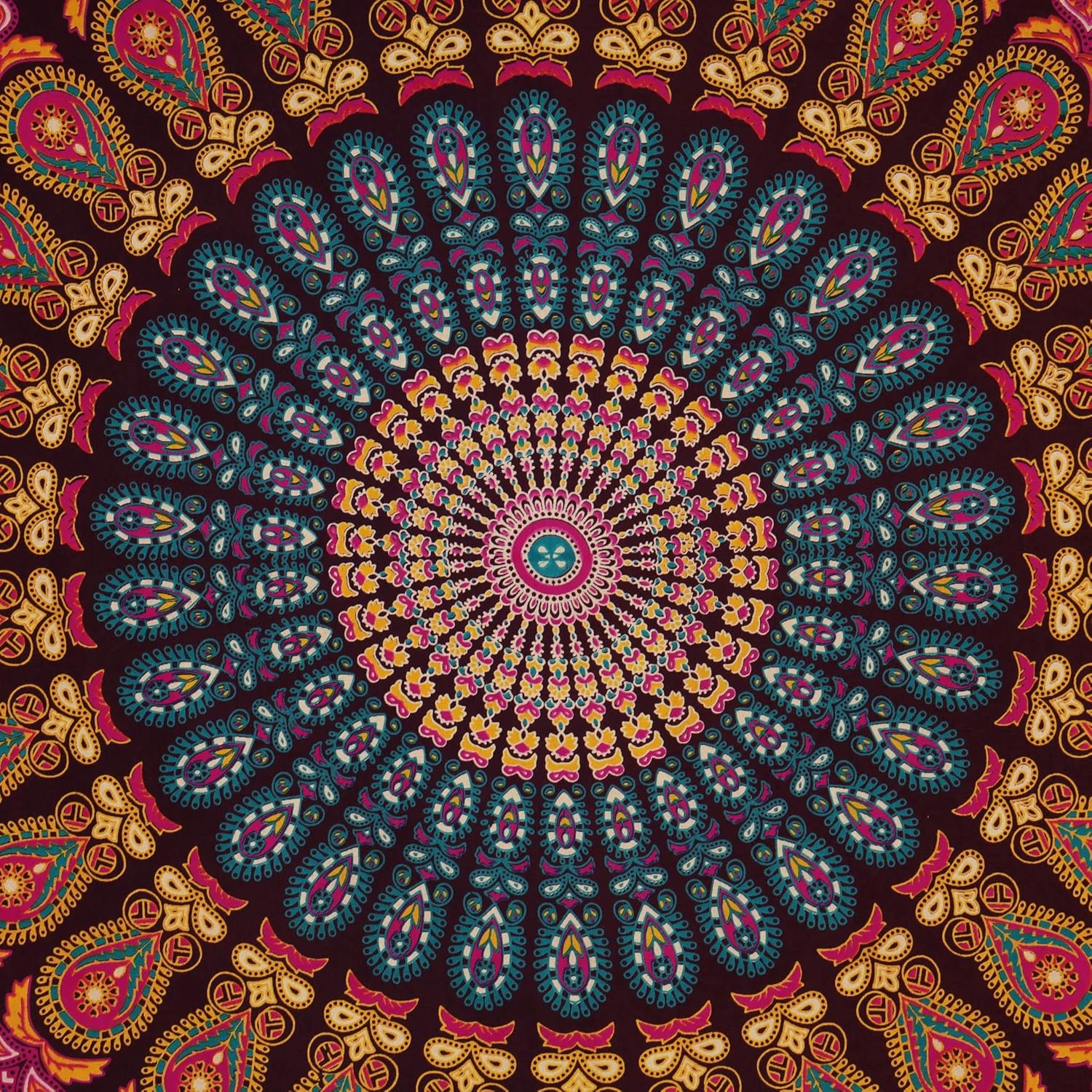Bless International Handmade Indian hippie Bohemian Psychedelic Peacock Mandala Wall hanging College Dorm Beach Throws Table Cloth Bedding Tapestry (Golden Pink Blue, King(88x104Inches)(225x265Cms))