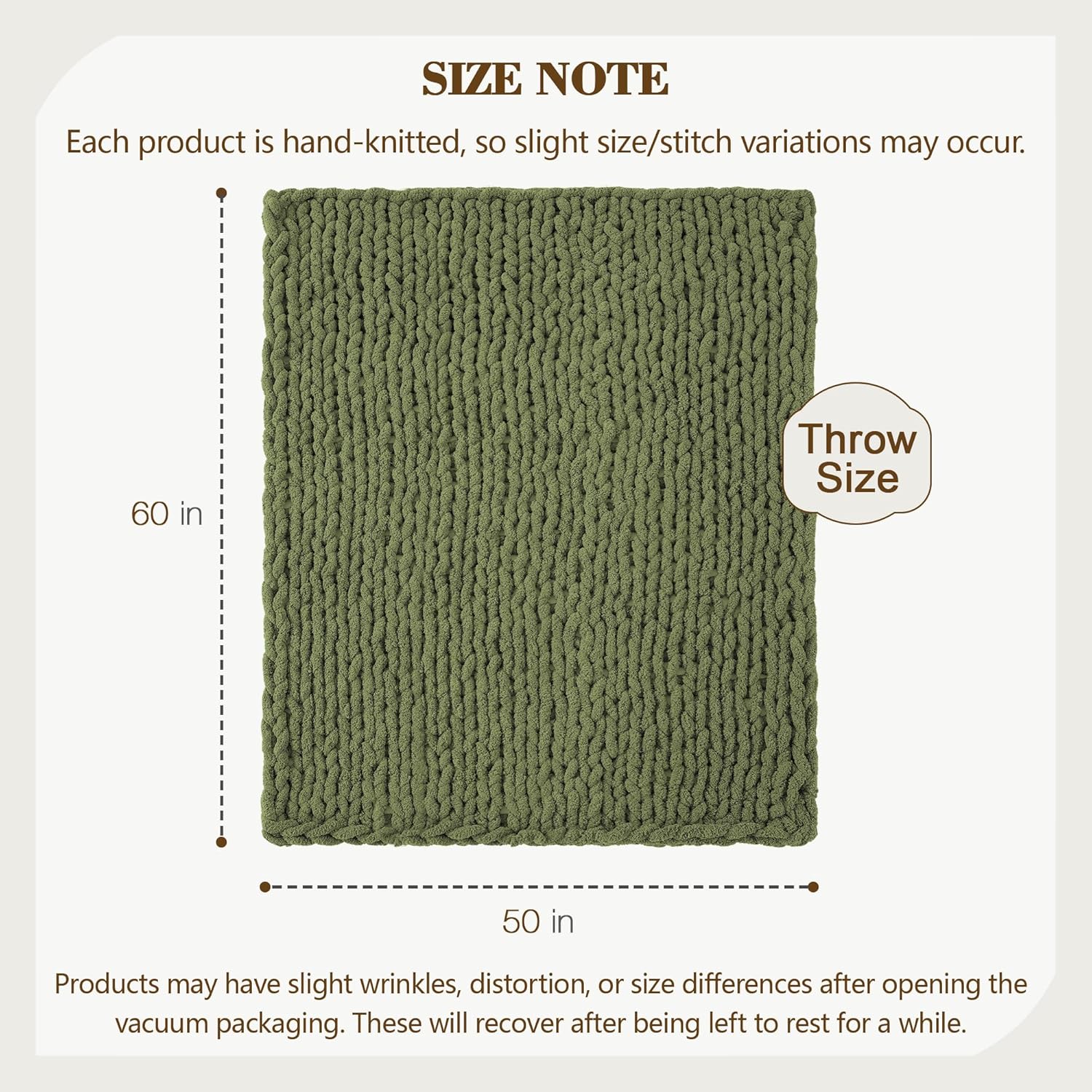 Carriediosa Chunky Knit Throw Blanket 50" X 60", 100% Hand Made Large Chenille Loop Yarn Soft Fluffy Throws for Couch Sofa Bed, Big Crochet Cozy Heavy Thick Cable Woven Blankets, Olive Green