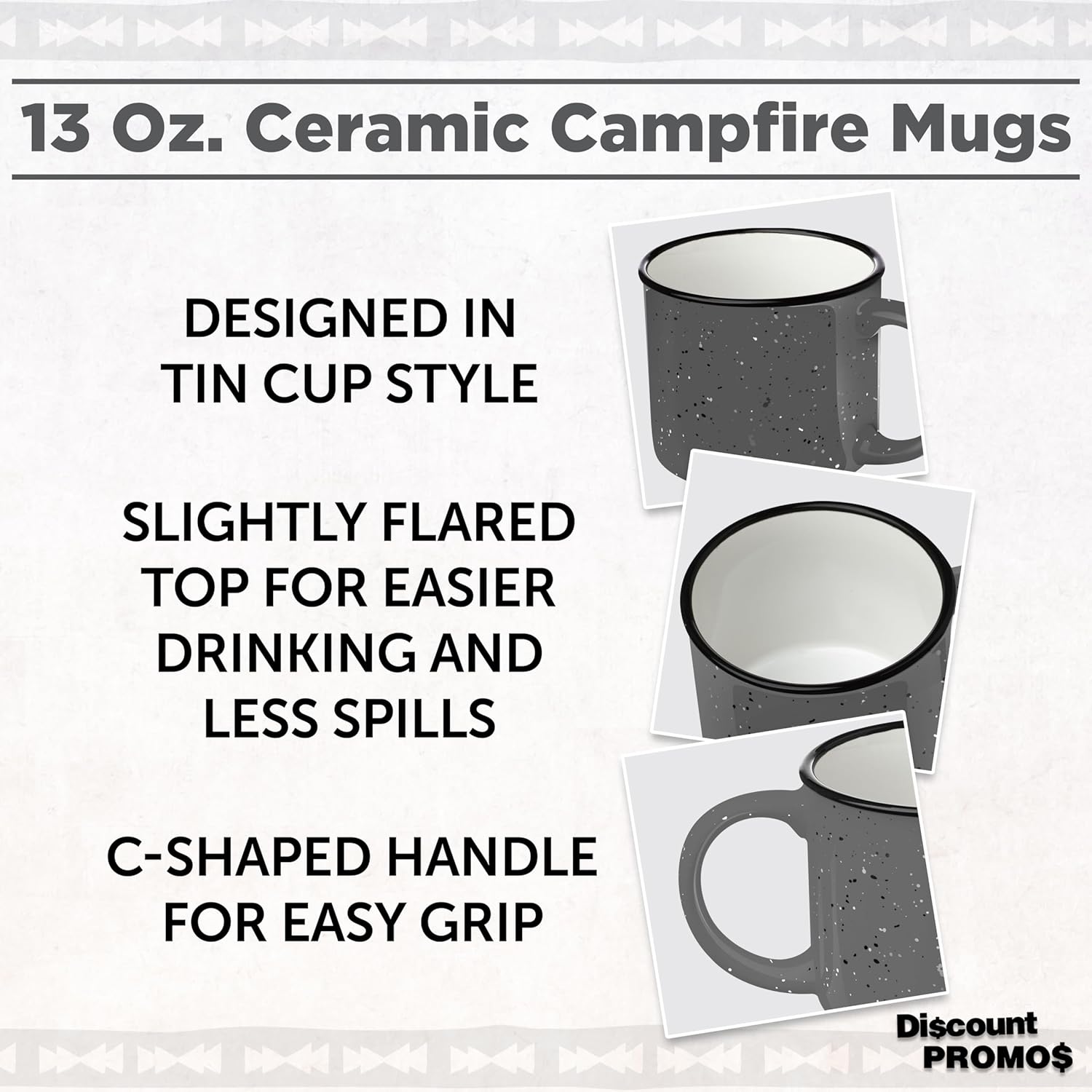 - DURABLE & COMFORTABLE DESIGN - 13-ounce Ceramic Campfire Coffee Mugs made of ceramic in the style of tin cups. Each ceramic coffee mug fits in your hand perfectly so you can enjoy your favorite hot or cold beverage. Plus, the slightly flared top makes for easy drinking and fewer spills.
