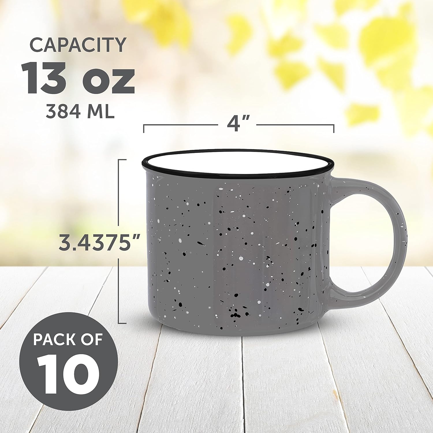 DISCOUNT PROMOS Ceramic Campfire Coffee Mugs 13 oz. Set of 10, Bulk Pack - Perfect for Tea, Espresso, Cappuccino, Hot Cocoa - Grey
