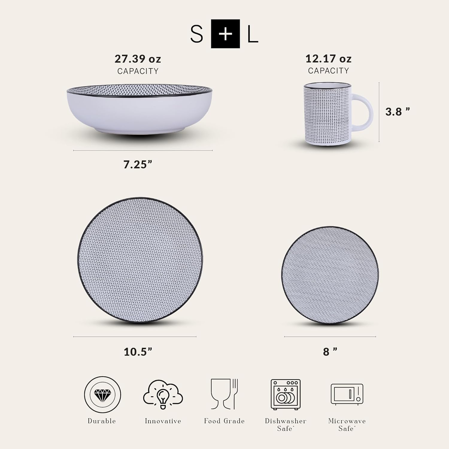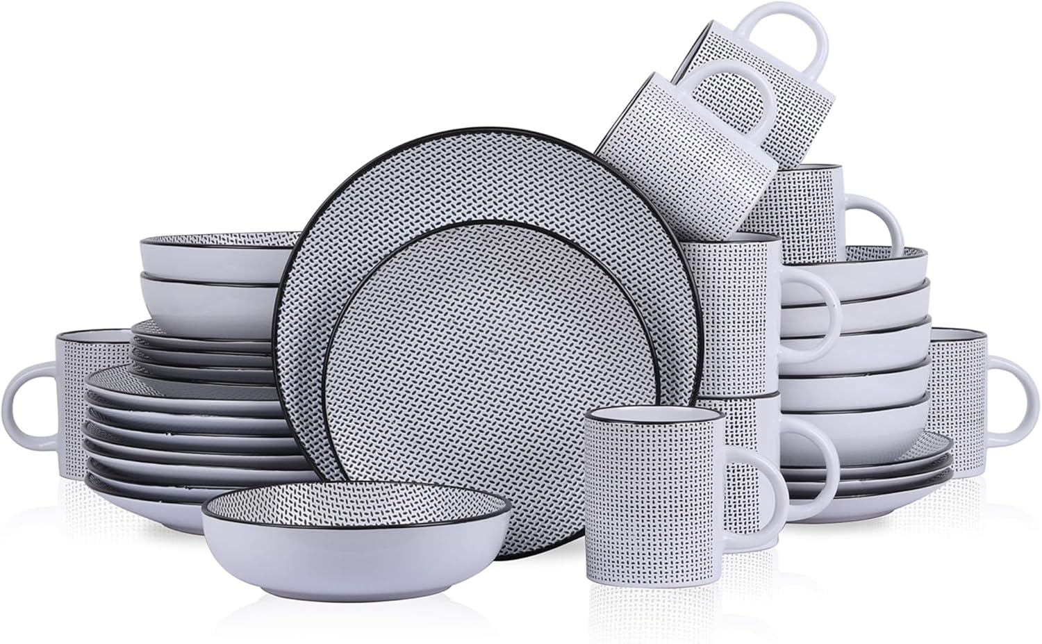 - STYLISH DESIGN: Daisy features a unique hashmark design in black with either a white or brown base color, making this dinnerware set an understated, versatile addition to your dining room.