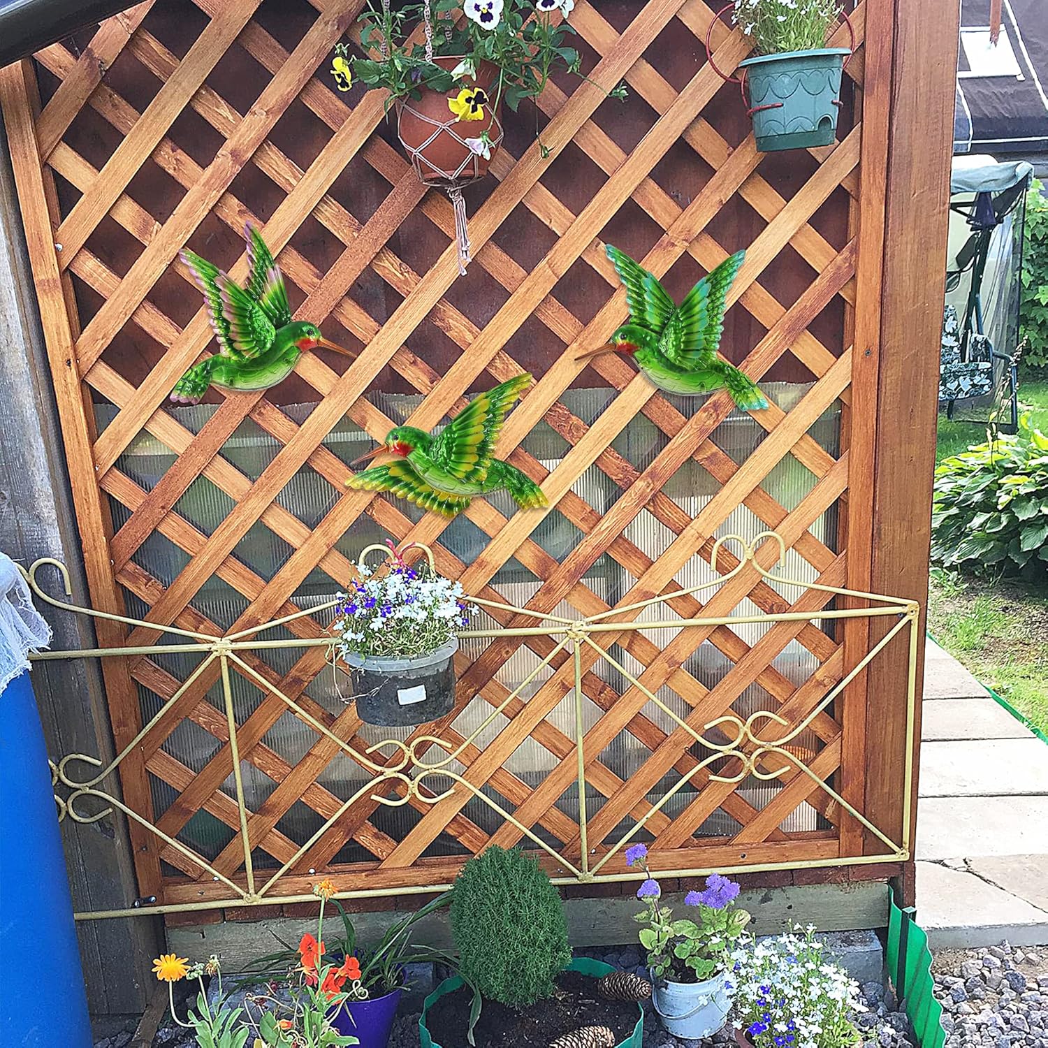J-Fly Glass Hummingbird Wall Art Outdoor Hummingbird Decor Metal Fence Decorative Hummingbird Hanging Bedroom Garden Patio Porch Fence of Decor 10 Inch