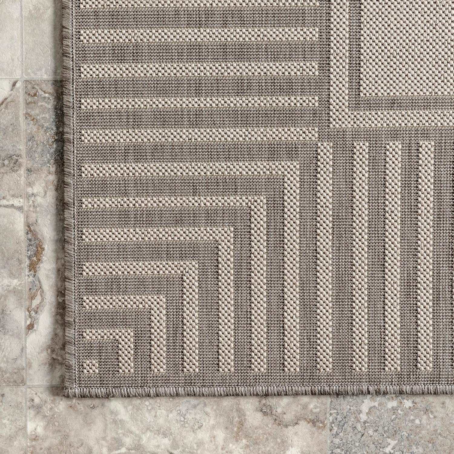 nuLOOM 5' x 8' Outdoor Area Rug, Casual Design With Striped Border, Stain Resistant, Highly Durable, For Patio, Balcony, Bedroom, Living Room, Dining Room, Bathroom, Light Grey