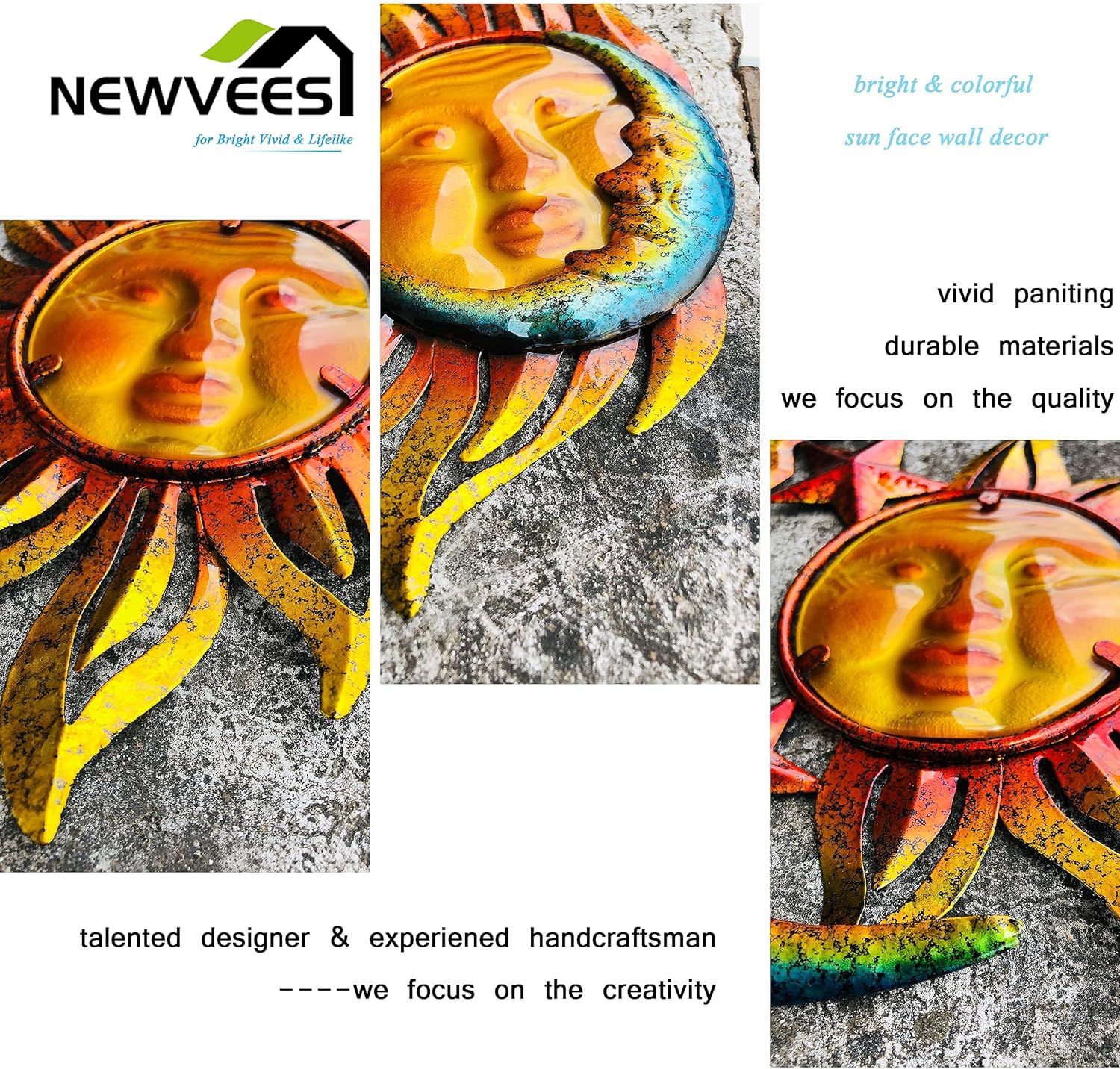 - High Quality: Made with clear coated durable metal, making it weather-proof, that truly makes it stand out. Sun face wall art decoration is unique, eye-catching color, bright and cheerful style.