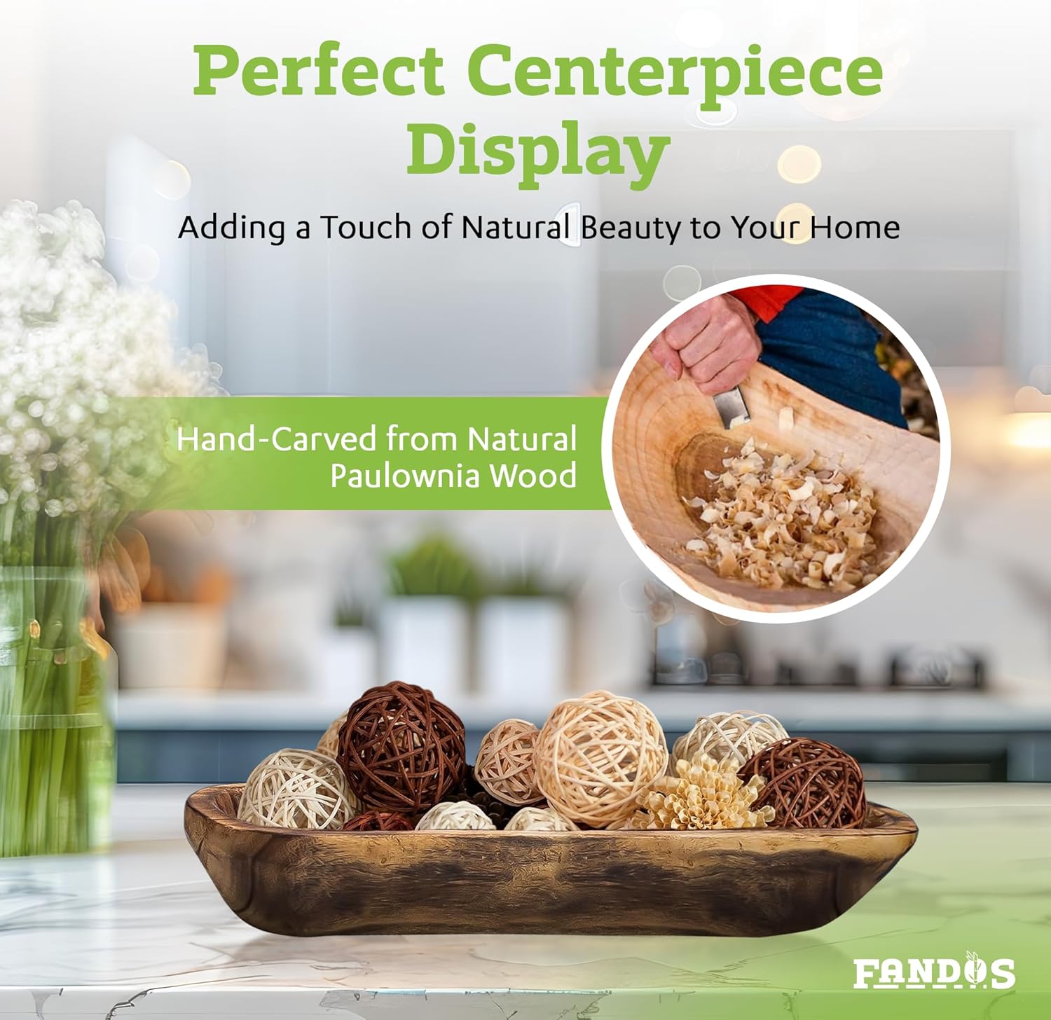 - QUALITY, STYLE & DURABILITY: Bring rustic charm to your home with this decorative wooden bowl made from 100% solid Paulownia. Strong, stylish, and built to last—perfect as a long dough bowl for centerpieces or wooden bowls for decor. Not intended for food or liquids. Wipe down with damp cloth or wood-safe polish.