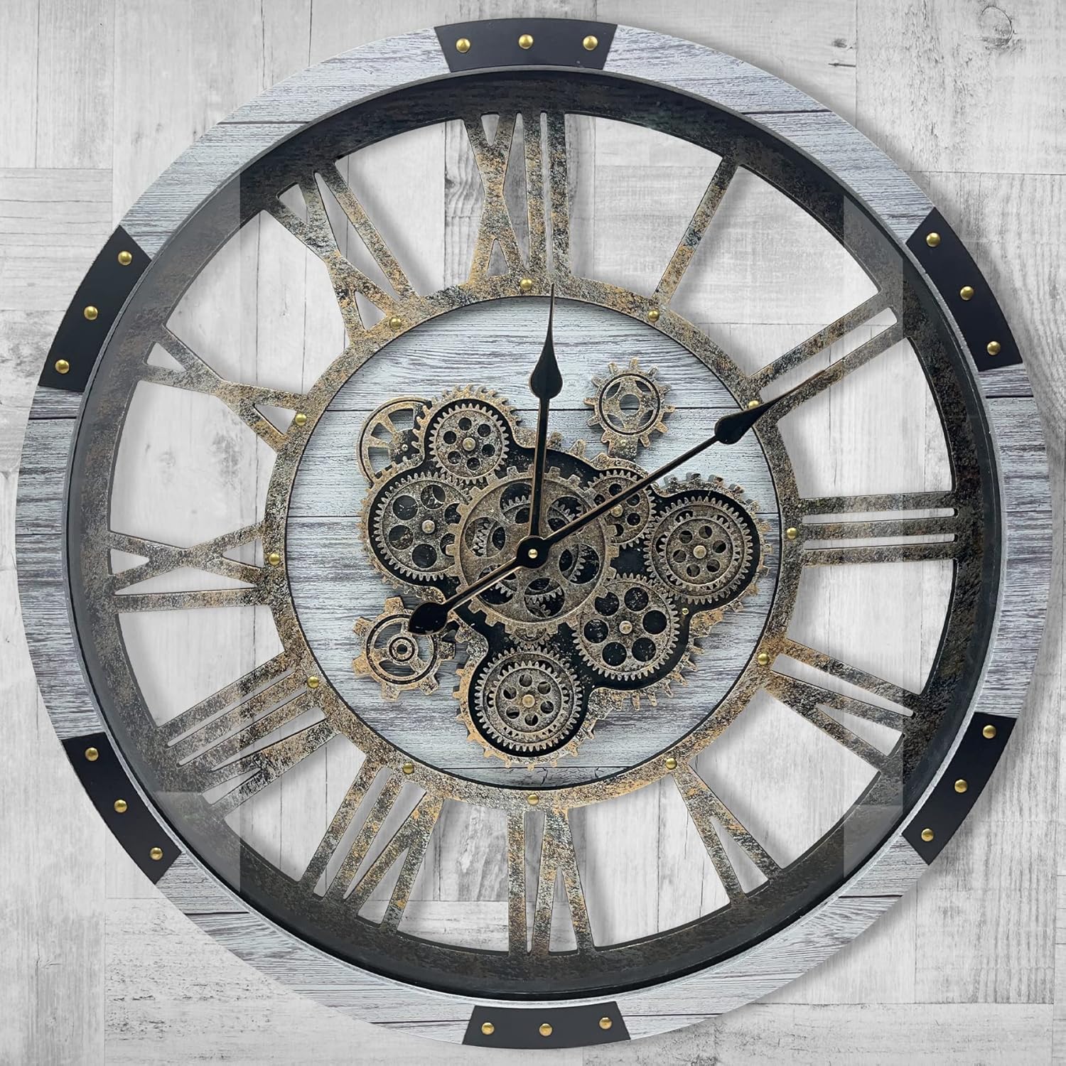 - Real Moving Gears Wall Clock: The large rustic wall clock is design with multi-real moving gears, put battery in, various gears start working, makes a subtle relaxing sound and makes a living element in the environment in where it is placed, vintage and magical, catch all eyes of visits