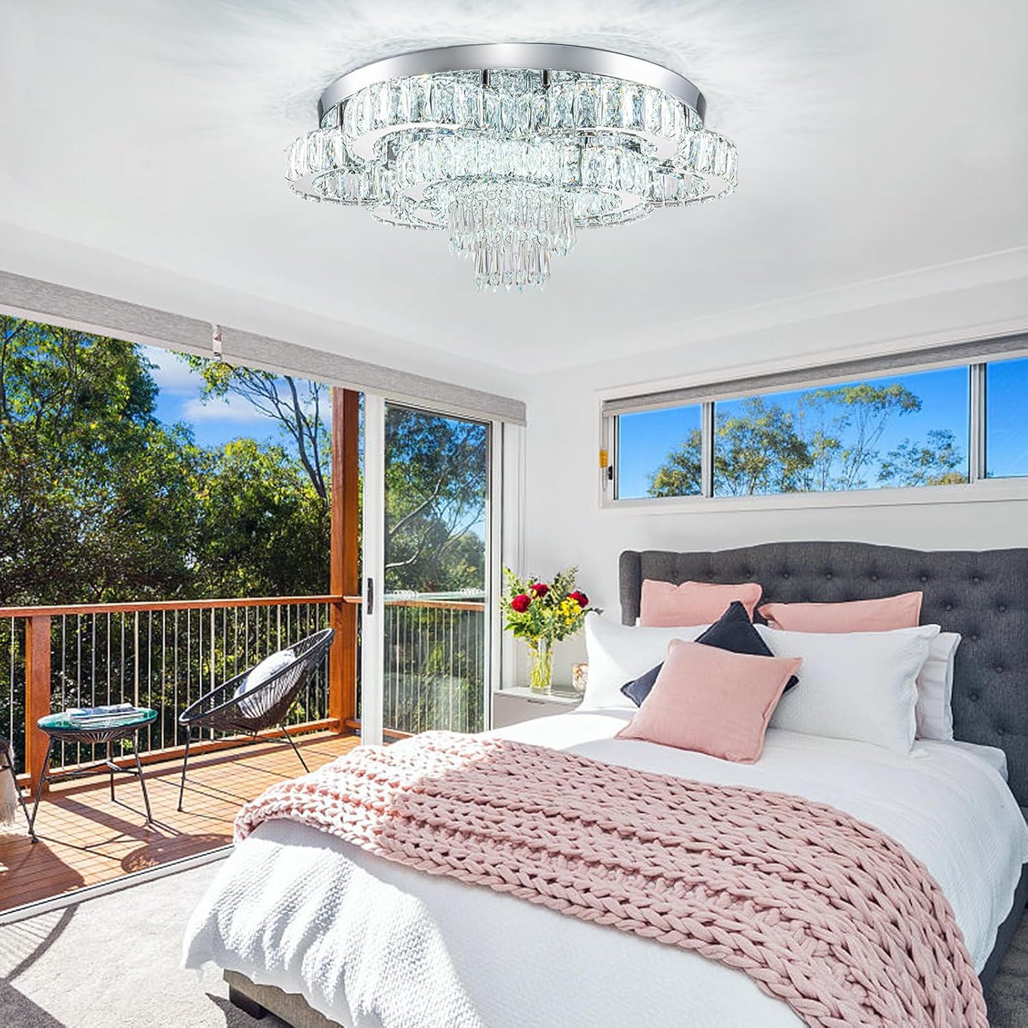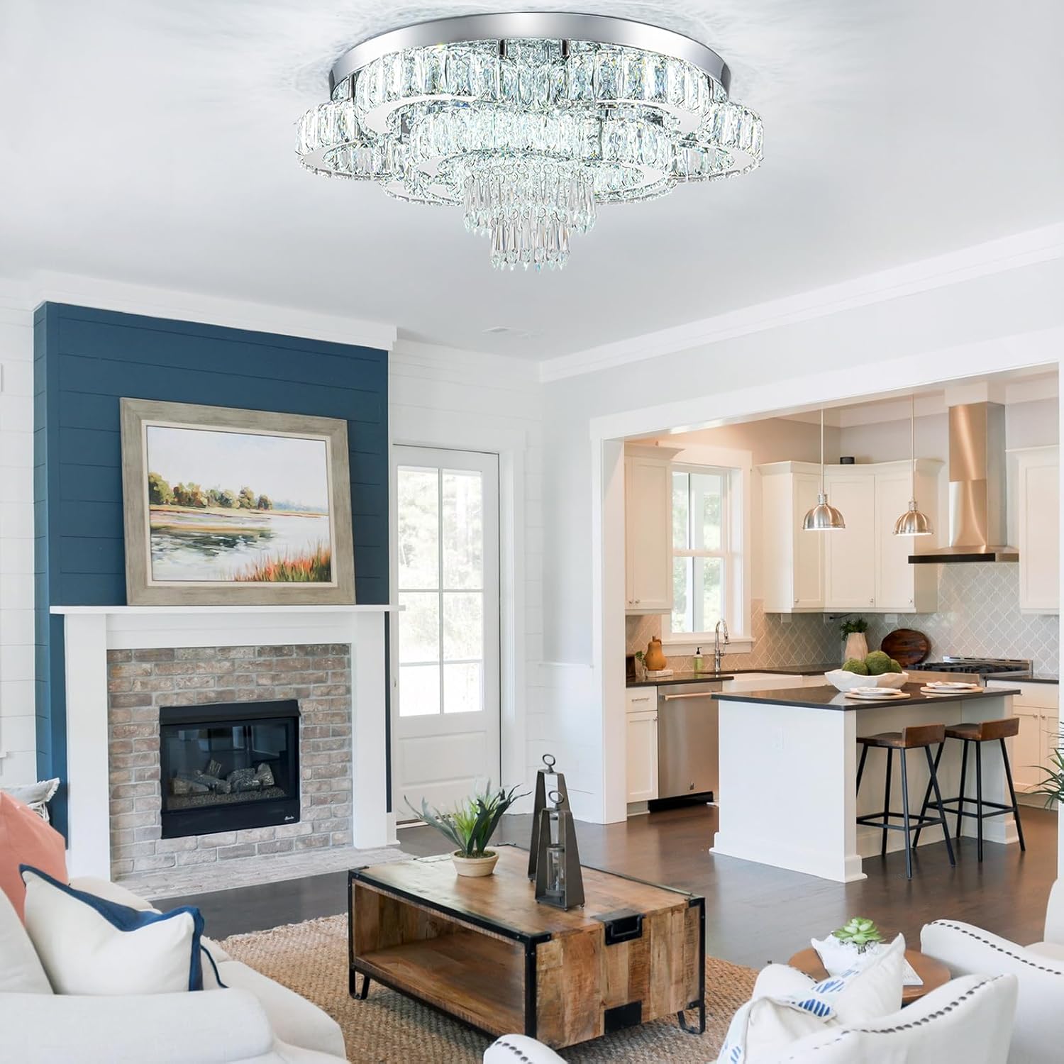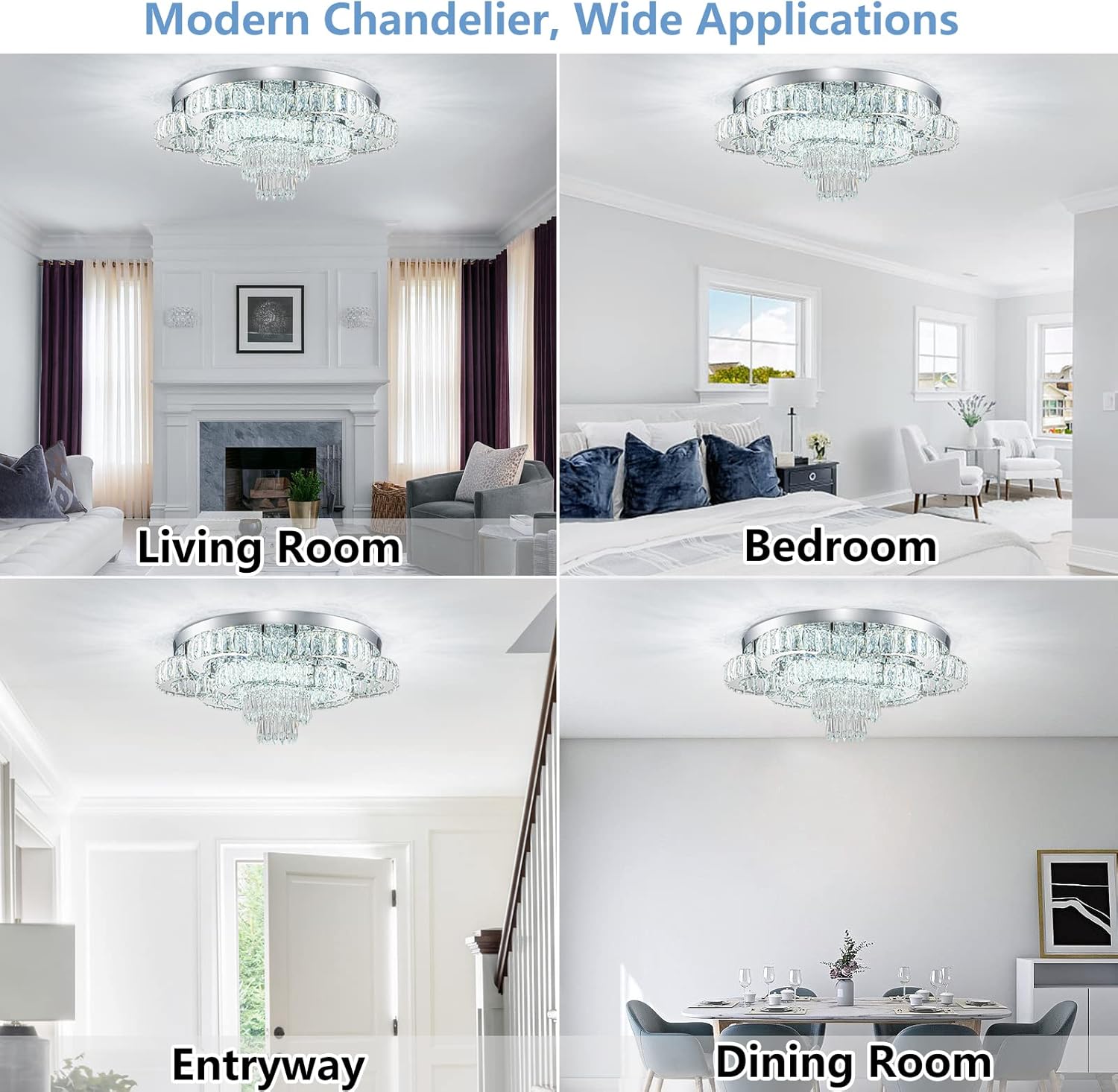 - -Wide Applications: itโs perfect to put this flush mount chandelier in large space or low ceiling such as your living room, dinning room, kitchen, bedroom, closet, foyer, porch, farmhouse, hallway, hall, study etc.