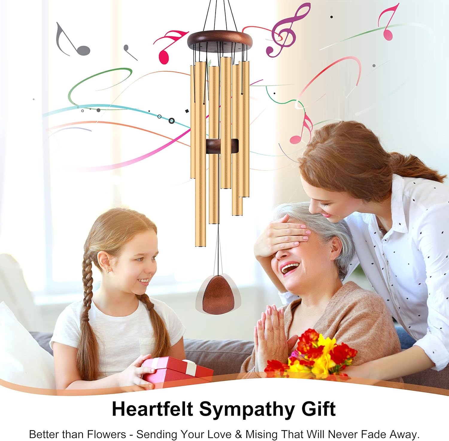 Large Aluminium Wind Chimes 37 Inches to Create a Zen Atmosphere Suitable for Outdoor, Garden, Patio Decoration. Classic Wind Chimes with Wind Catcher Suitable as A Gift for Unisex(Gold)