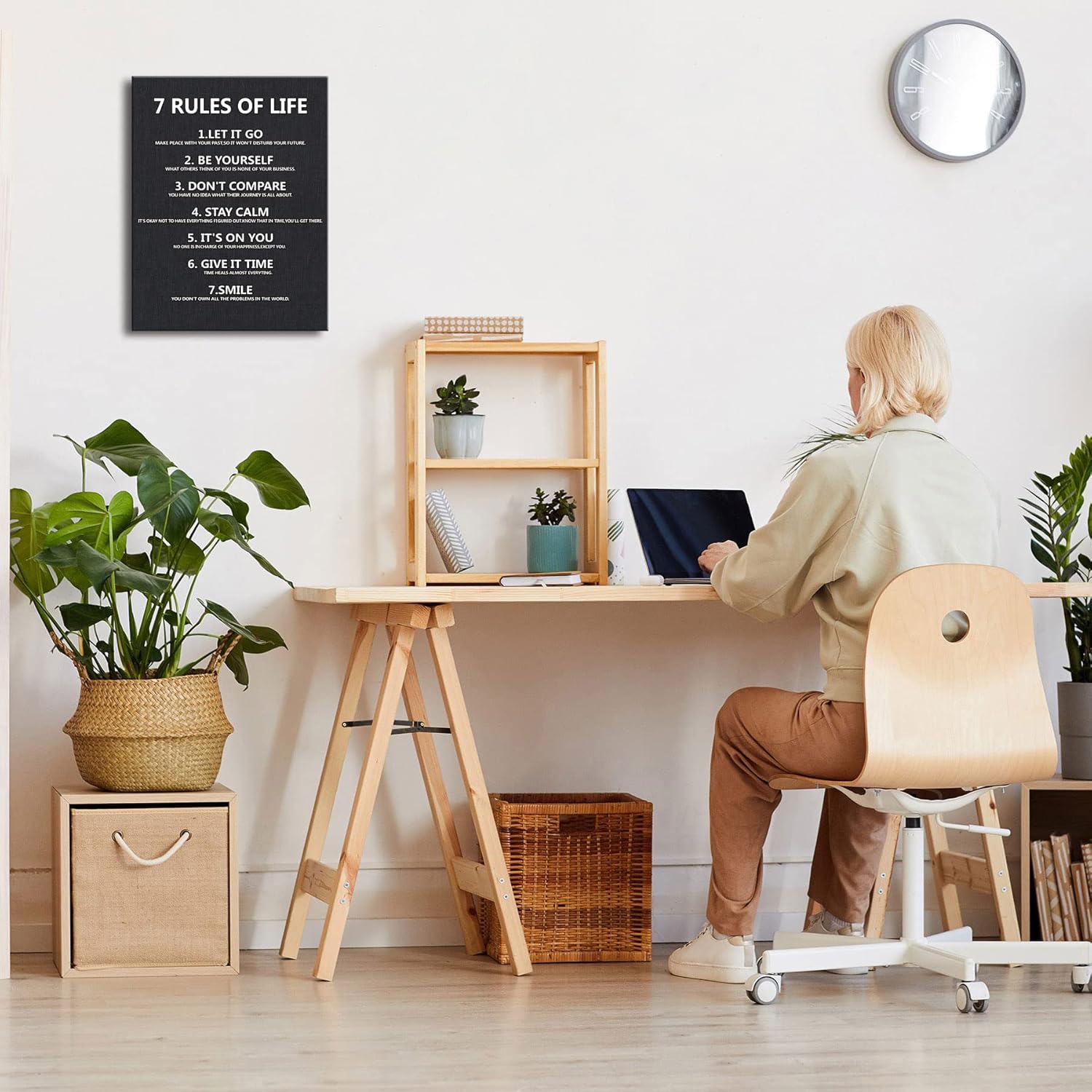7 Rules of Life Wall Art Motivational Inspirational Poster Printed on Canvas Wall Decor for Living Room or Office Canvas Prints For Bedroom or Home Art Decoration Positive Wall Art for Office Ready to