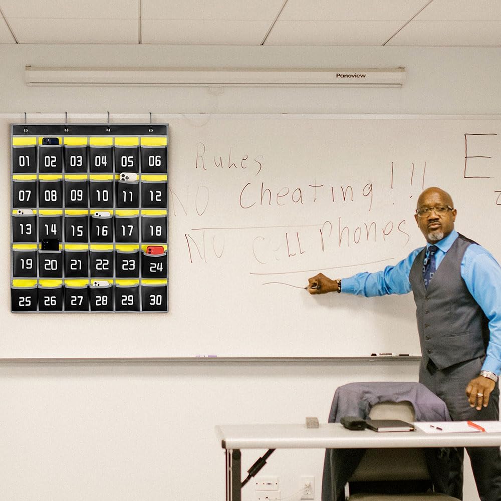 - ăCell Phone Pocket Chart for ClassroomăUsed as classroom phone storage and calculator storage. Perfectly to hold students cell phone, calculators in class. Let students focus more on studying, say goodbye to students playing with their phones in class and create an efficient classroom.