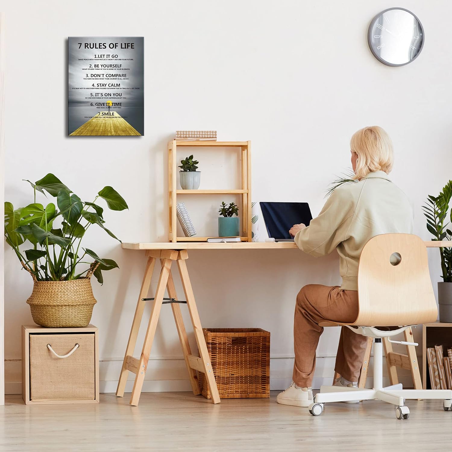 7 Rules of Life Motivational wall decor on canvas for classroom prints posters,inspirational wall art prints for home decor or home Positive for Office preppy room decor for Living Room A-253