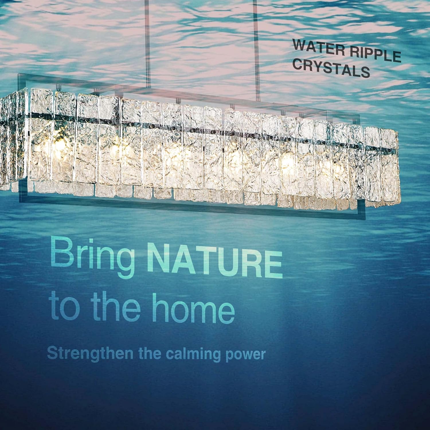 - [ LARGE RECTANGLE CHANDELIER ]: The dimension of this unique crystal chandelier is L42" x W11" x H12". The hanging height is from 4"-60" adjustable. The US standard canopy size: L14" x W4.3" x H1.1". The total weight is 24LB. And it is perfect for large dining room, kitchen island, living room, bar area, etc.