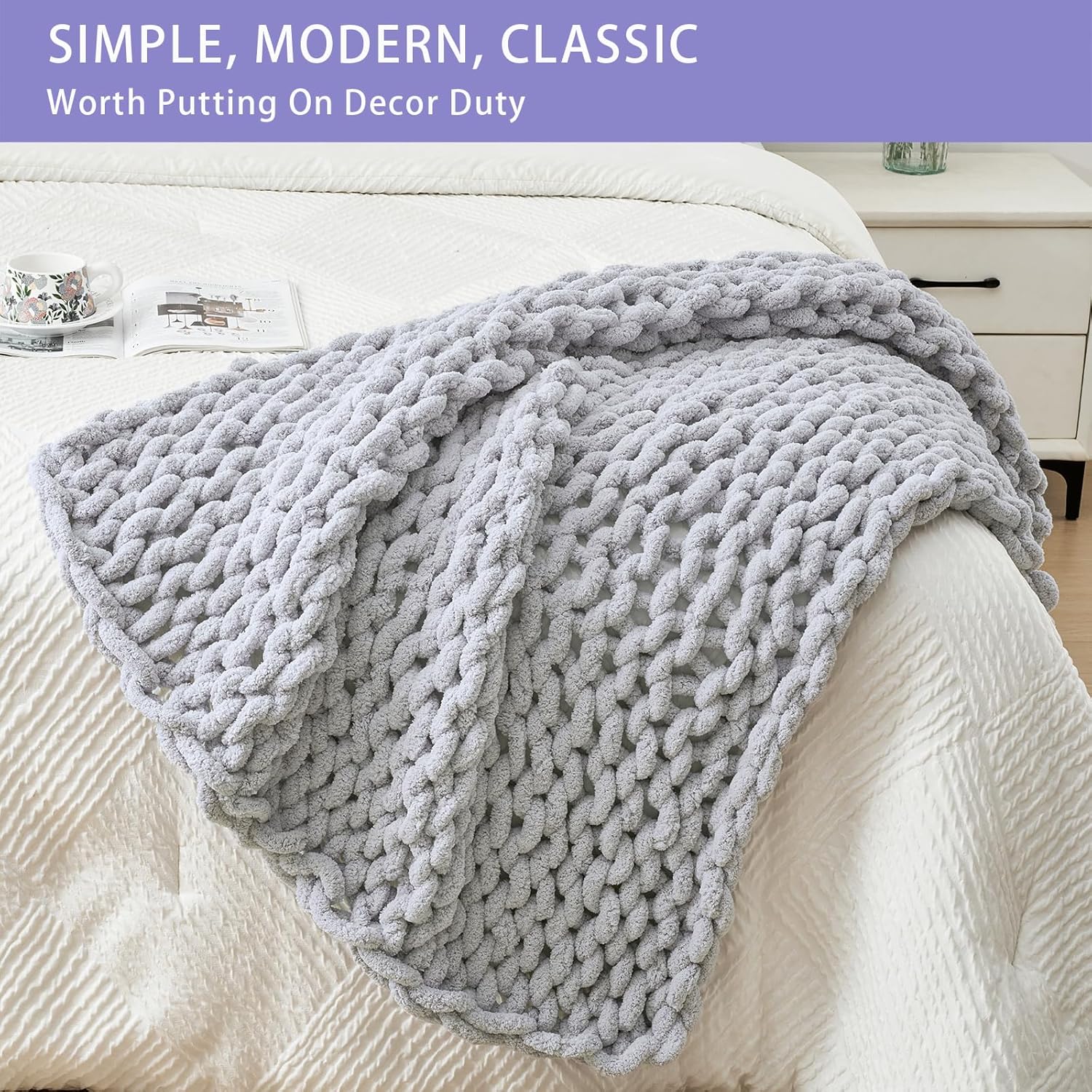 - No Shedding, No Stiffness, No Prickly: Our soft thick blankets and throws are knitted with premium chenille yarn to prevent shedding and stiffness, on chilly days, wrap you and your loved ones in the chunky blanket and enjoy this cuddly throw together