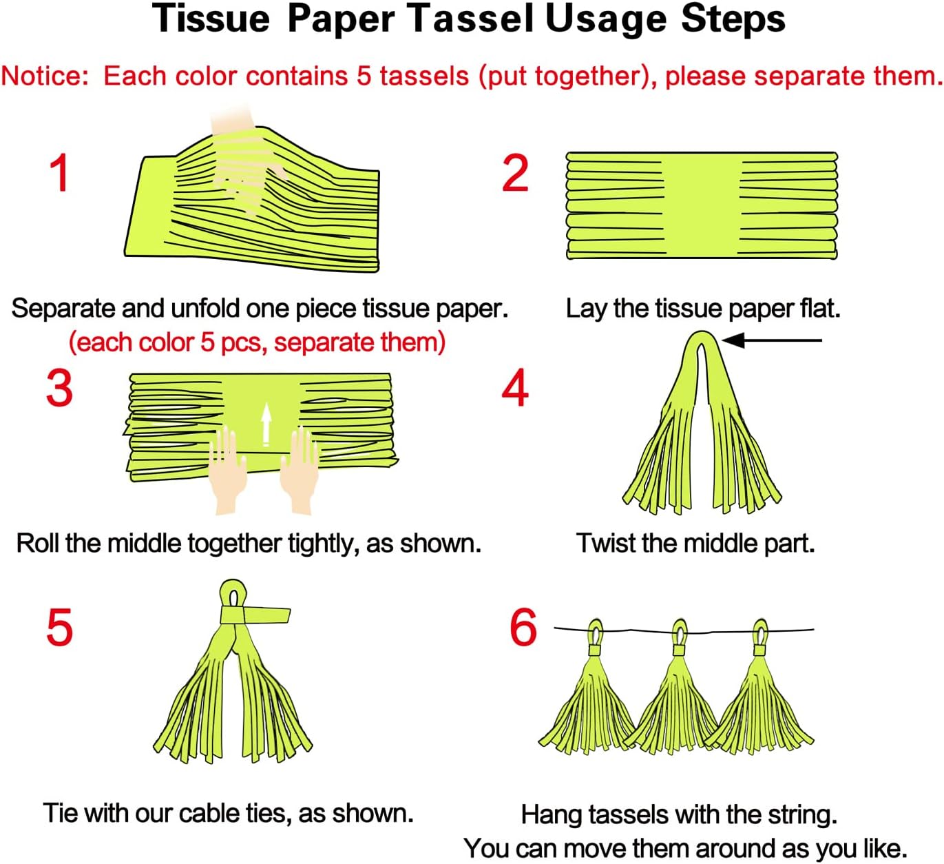 - 【DIY needed】The tissues come plain, need to be assembled as the instruction.Just follow our instruction manual on how to assemble tassels.